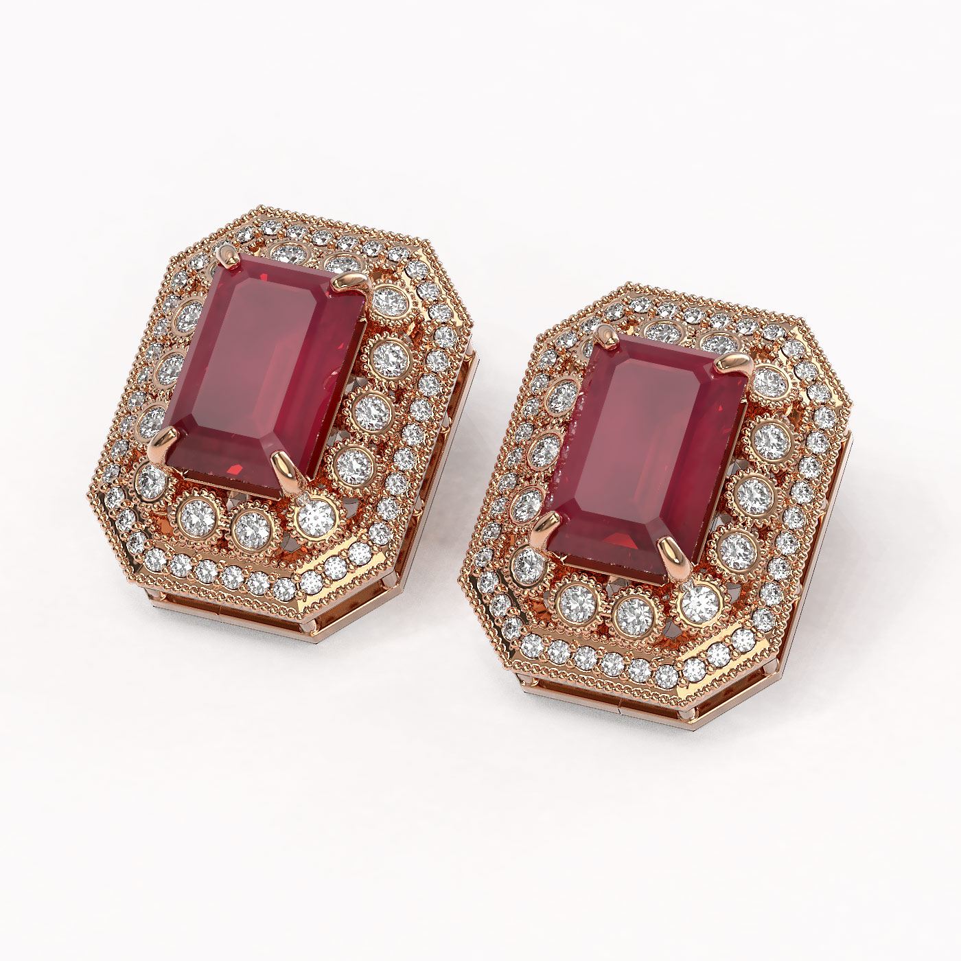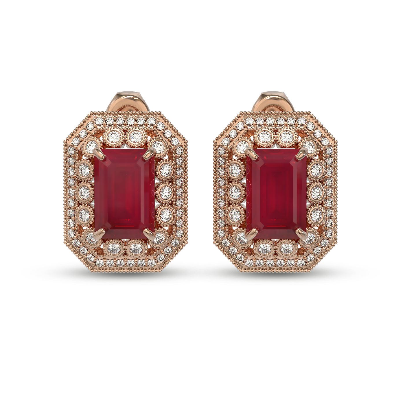 SKU: 43416 ---- 13.75 ctw Certified Ruby & Diamond Victorian Earrings 14K Rose Gold