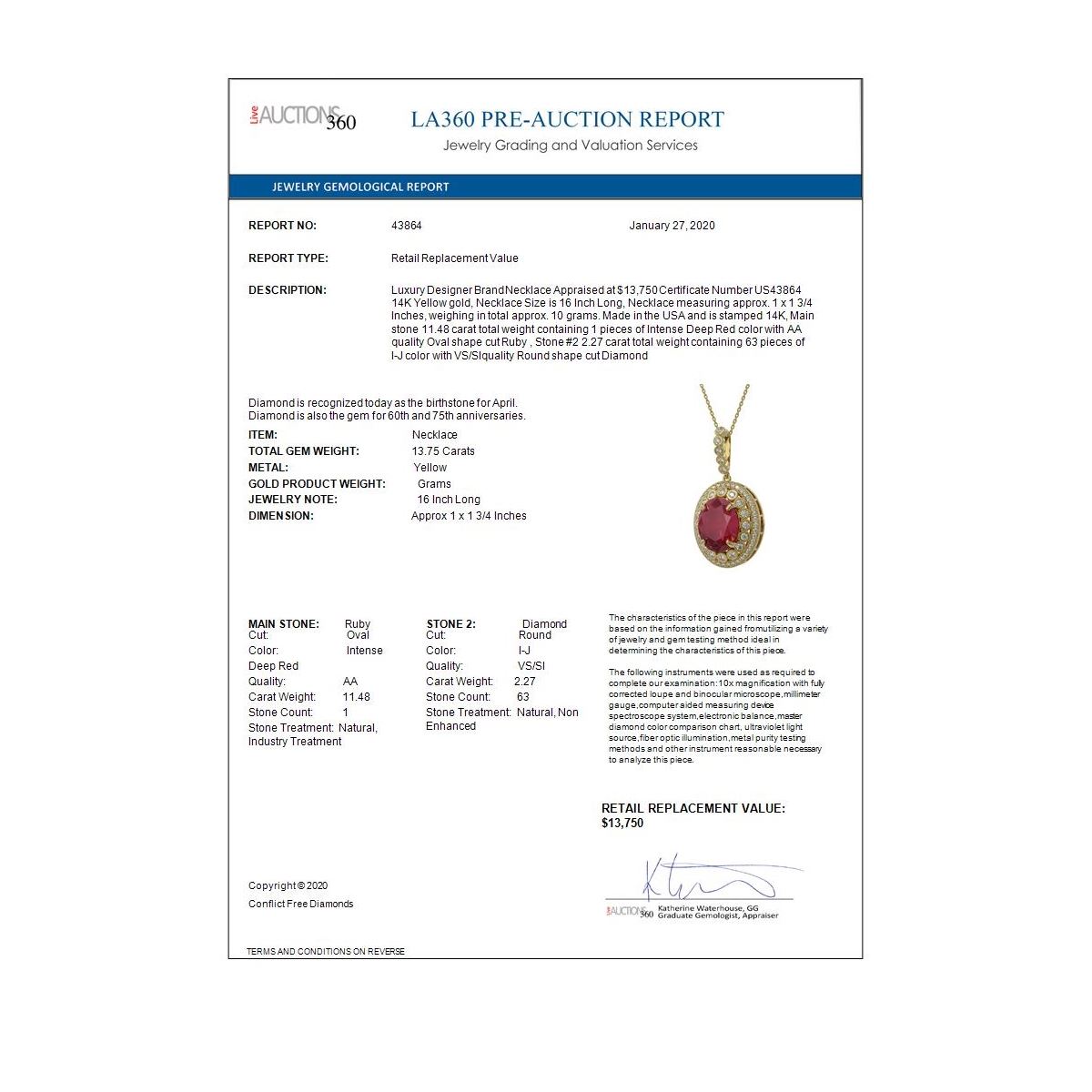 Total Gem weight: 13.75 carats