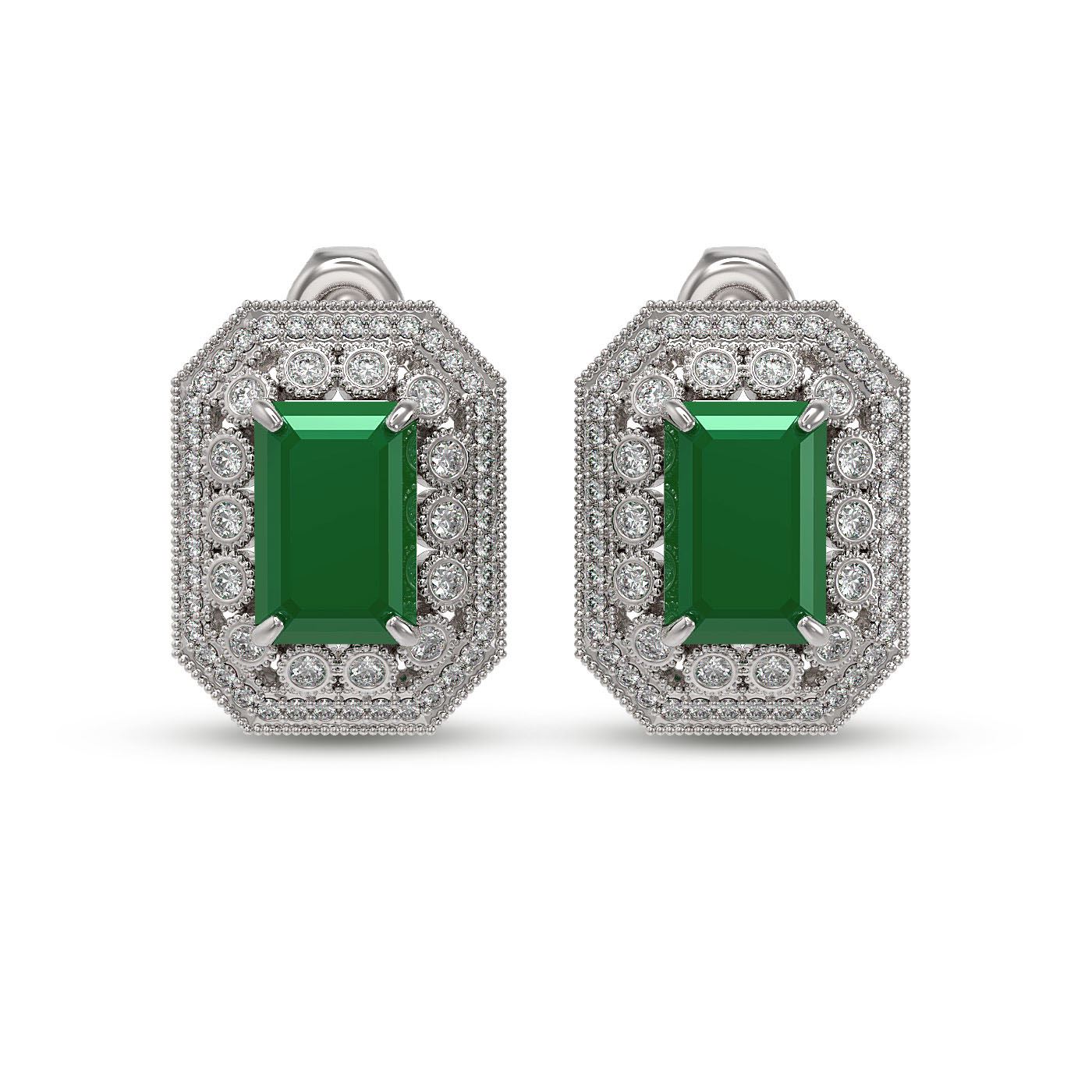 REF-266M4F - SKU:43412 ---- 13.75 ctw Emerald & Diamond Earrings 14K White Gold
