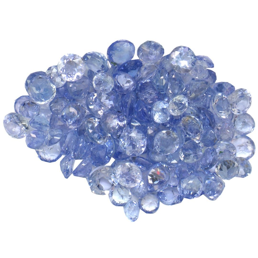 Fifty round mixed cut natural tanzanites, measuring 2.00 - 2.00 x 1.30 mm, exact total weight 13.75ct., clarity is slightly included, type I, medium, very slightly grayish, violetish blue color, (GIA vB 5/3), cut is good. Measurements & the color grade are an average for the group, Color grade is an average for the group, Transmitting light with no distortion, transparent, Naturally occurring internal & external characteristics are present, Indications of multiple laboratory enhancements, including high temperature heat treatment. Westfield Appraised at $1,325.00.