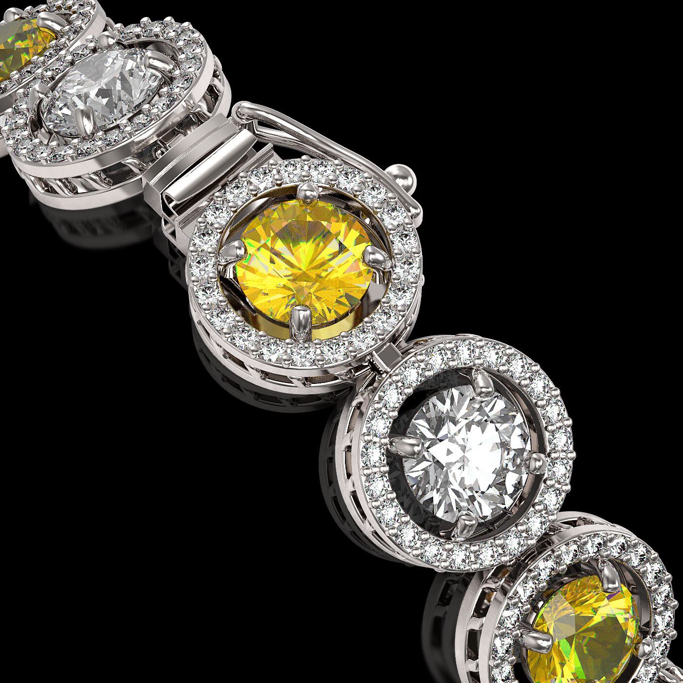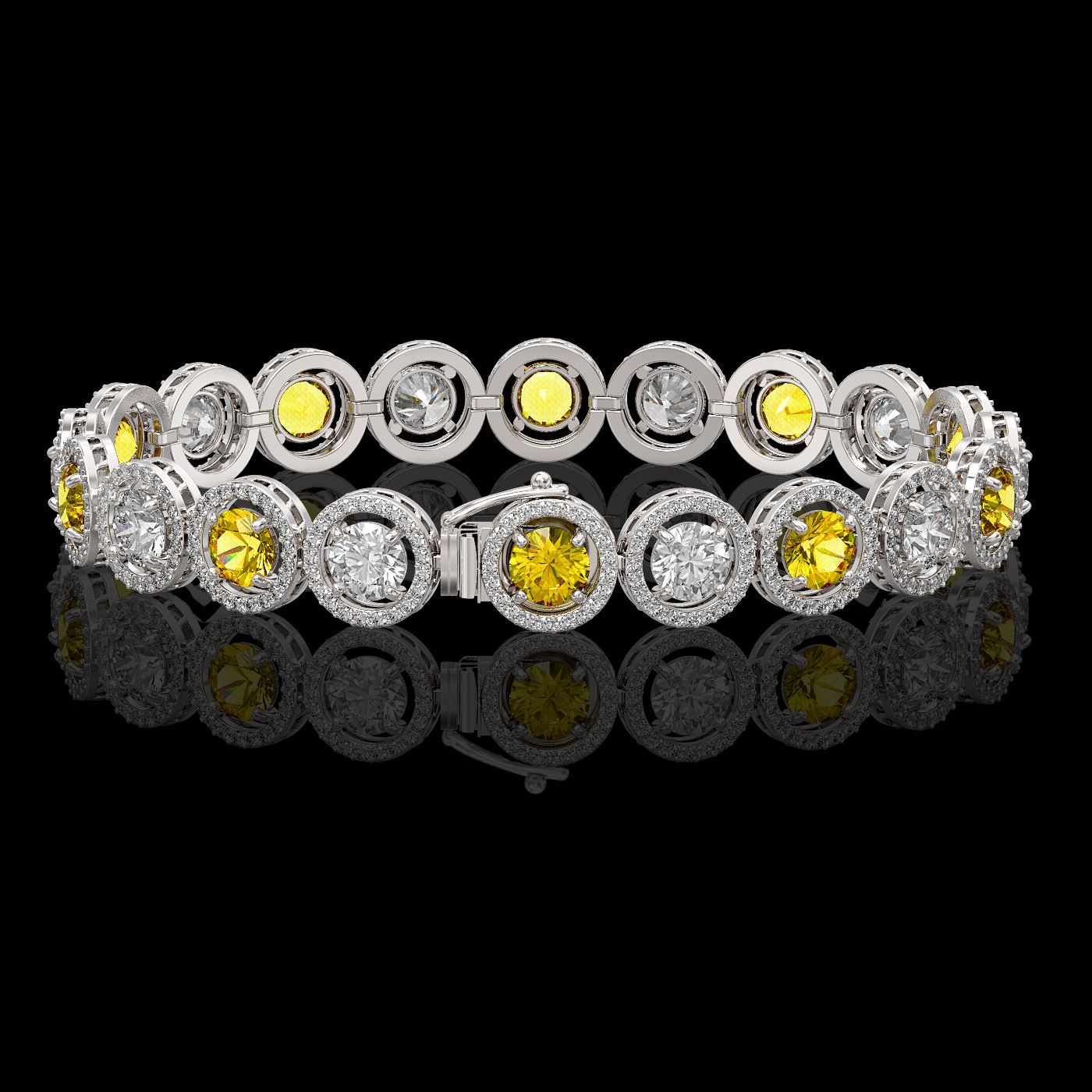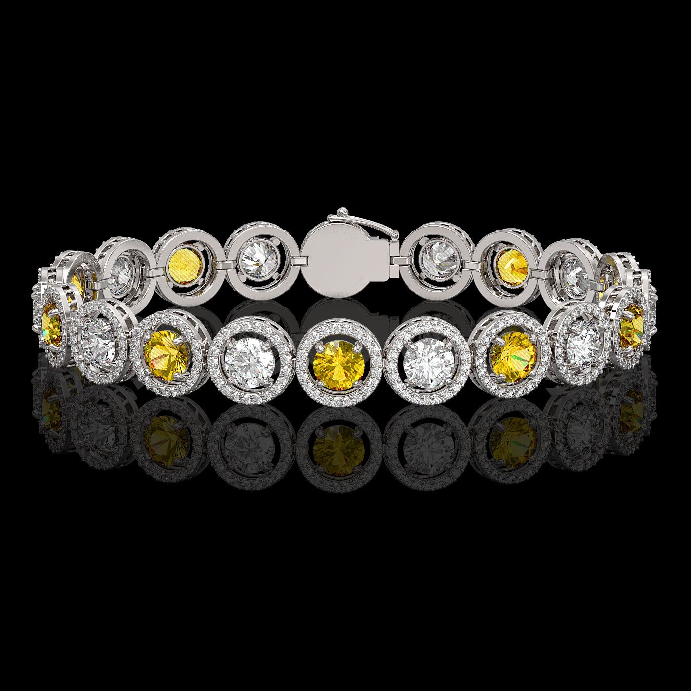 REF-1461A3N - SKU: 42599 ---- 13.76 ctw Canary & Diamond Micro Pave Bracelet 18K White Gold