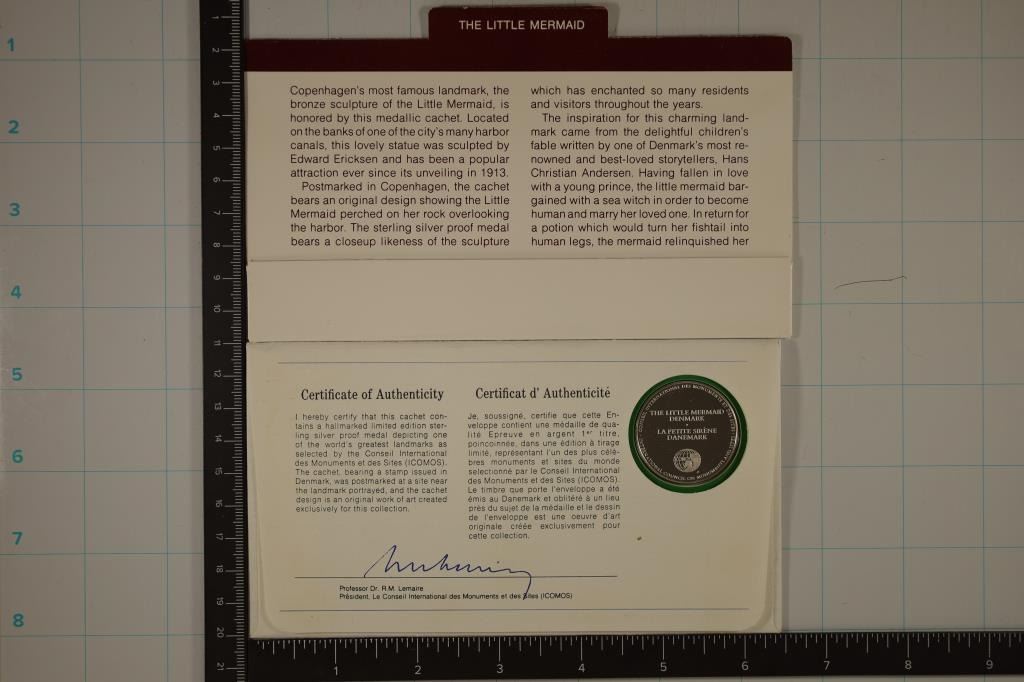 MERMAID" COPENHAGEN DENMARK. WORLD'S 100 GREATEST LANDMARKS WITH INFO CARD. BY THE FRANKLIN MINT