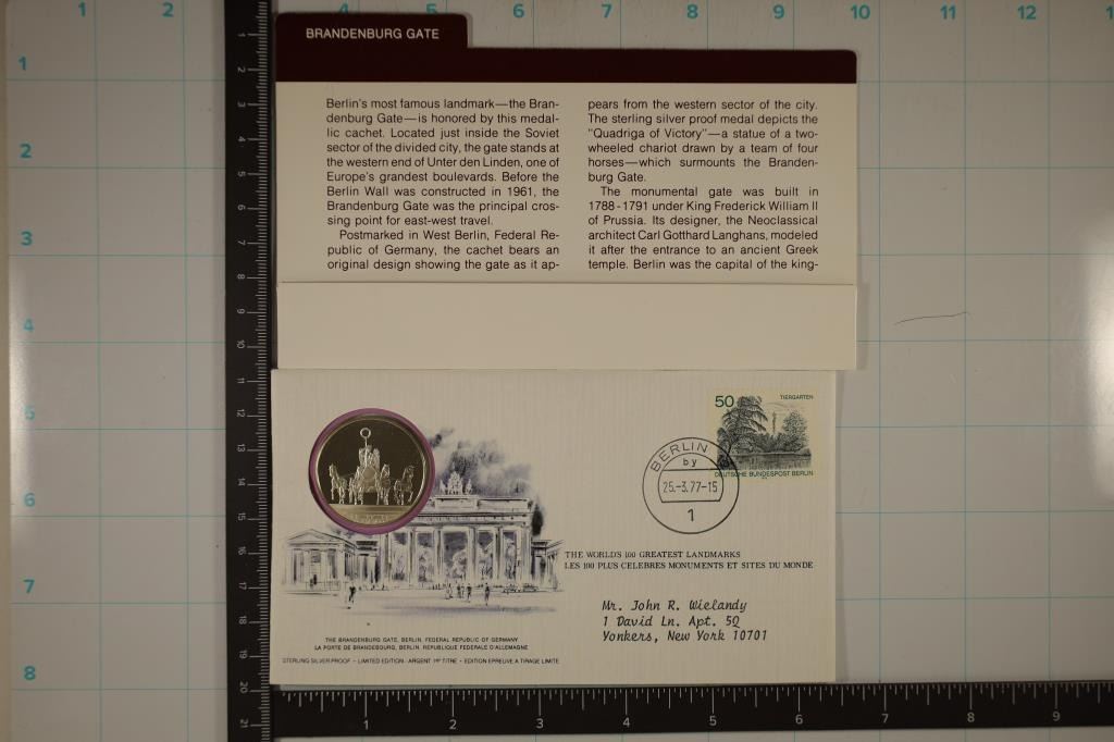 BRANDENBERG GATE, BERLIN GERMANY FDC, WORLDS 100 GREATEST LANDMARKS WITH INFO CARD BY THE FRANKLIN MINT