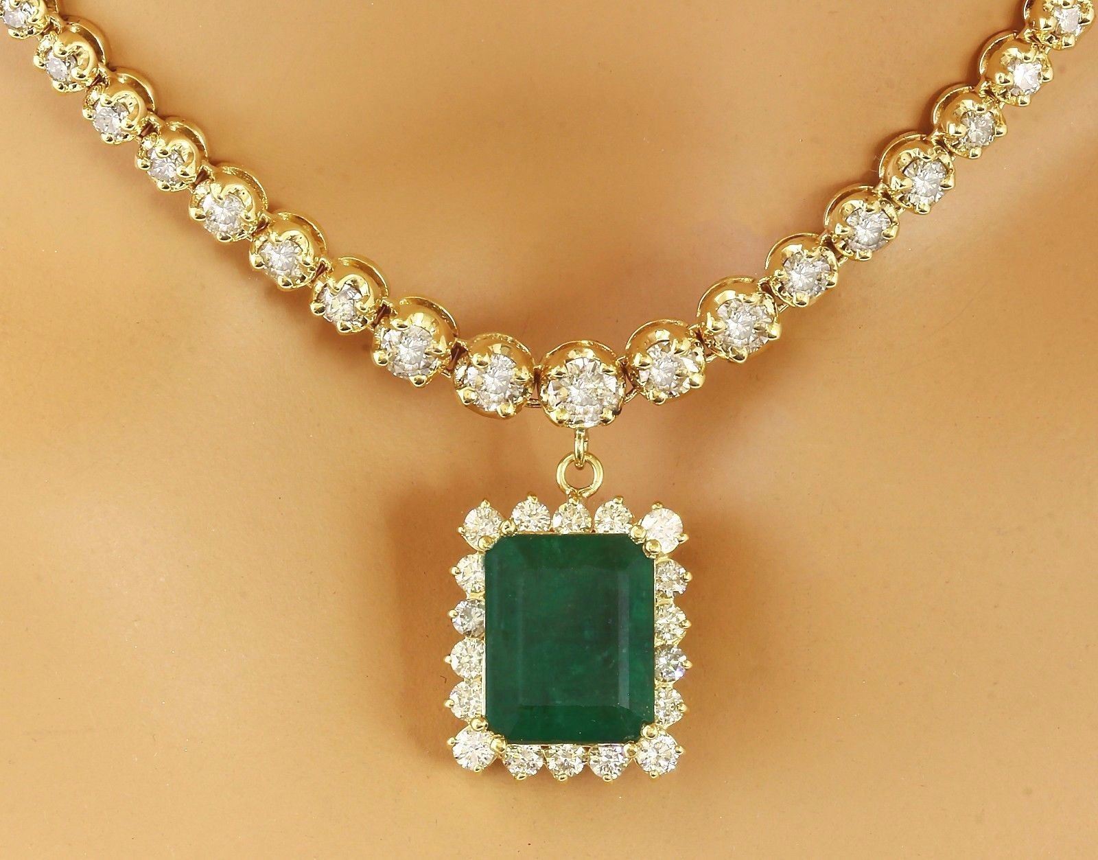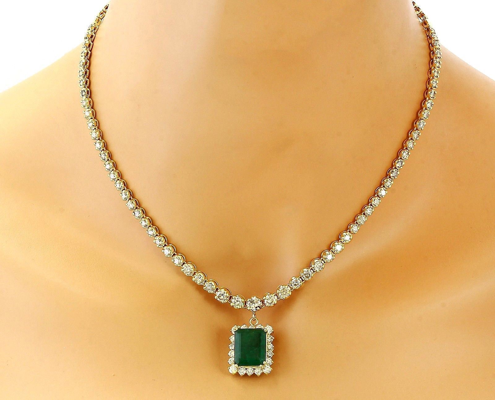 13.80 Carat Natural Emerald 18K Solid Yellow Gold Diamond Necklace