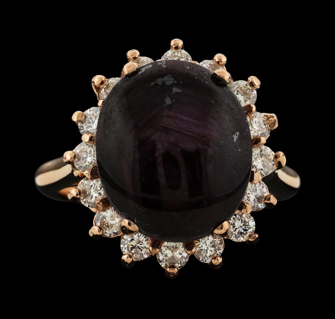 One ring : 14KT rose gold weighing 5.88gm containing star ruby with a total weight of 13.80ct and diamonds weighing 0.88ctw.