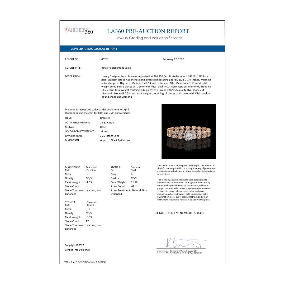 REF-1648R8K - SKU: 46231 ---- 13.82 ctw Cushion Cut & Oval Diamond Bracelet 18K Rose Gold