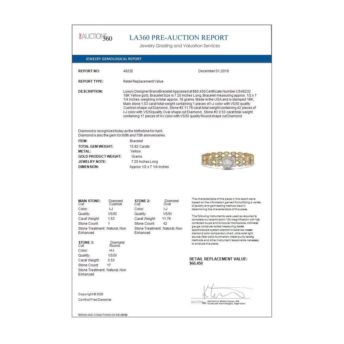 REF-1648G8W - SKU: 46232 ---- 13.82 ctw Cushion Cut & Oval Diamond Bracelet 18K Yellow Gold
