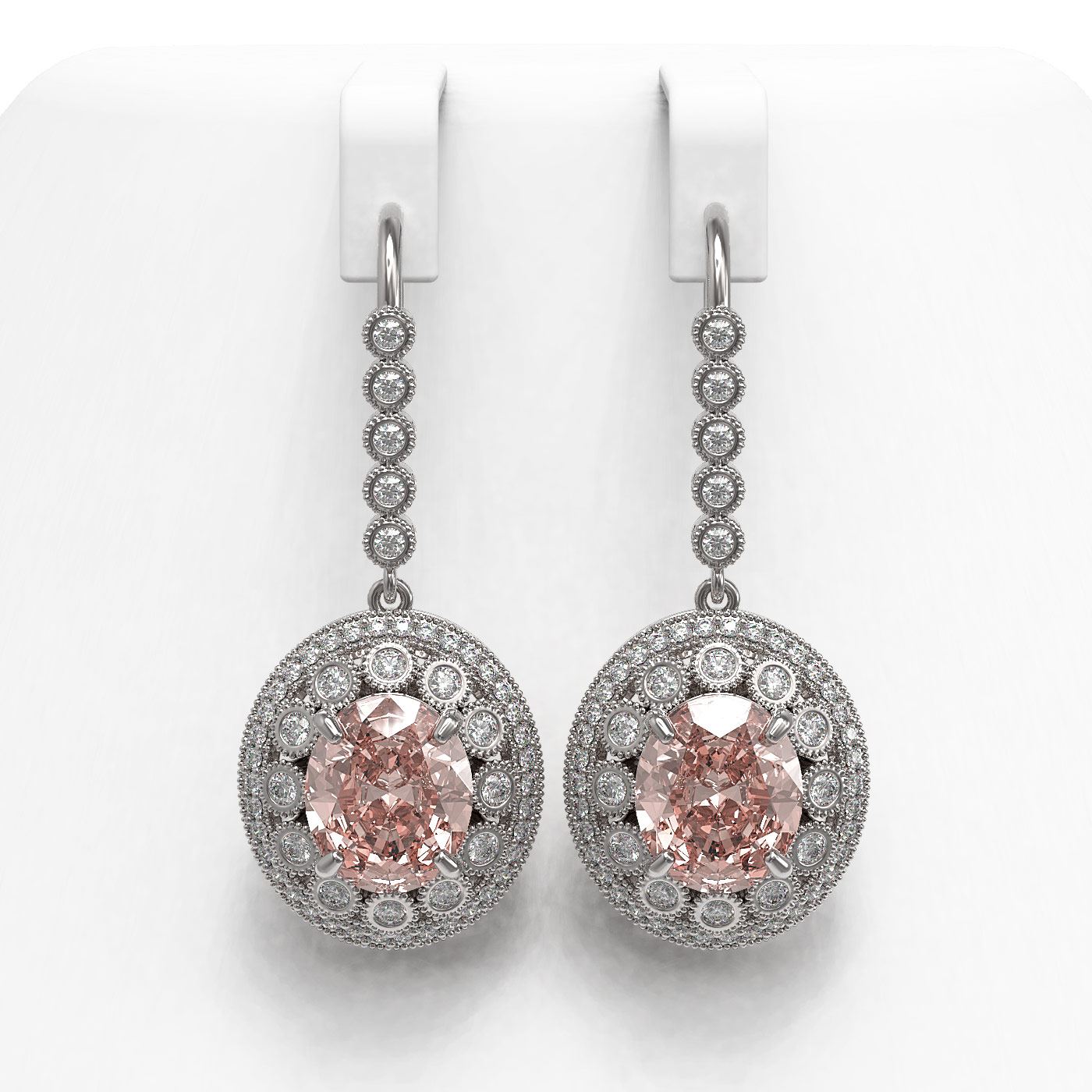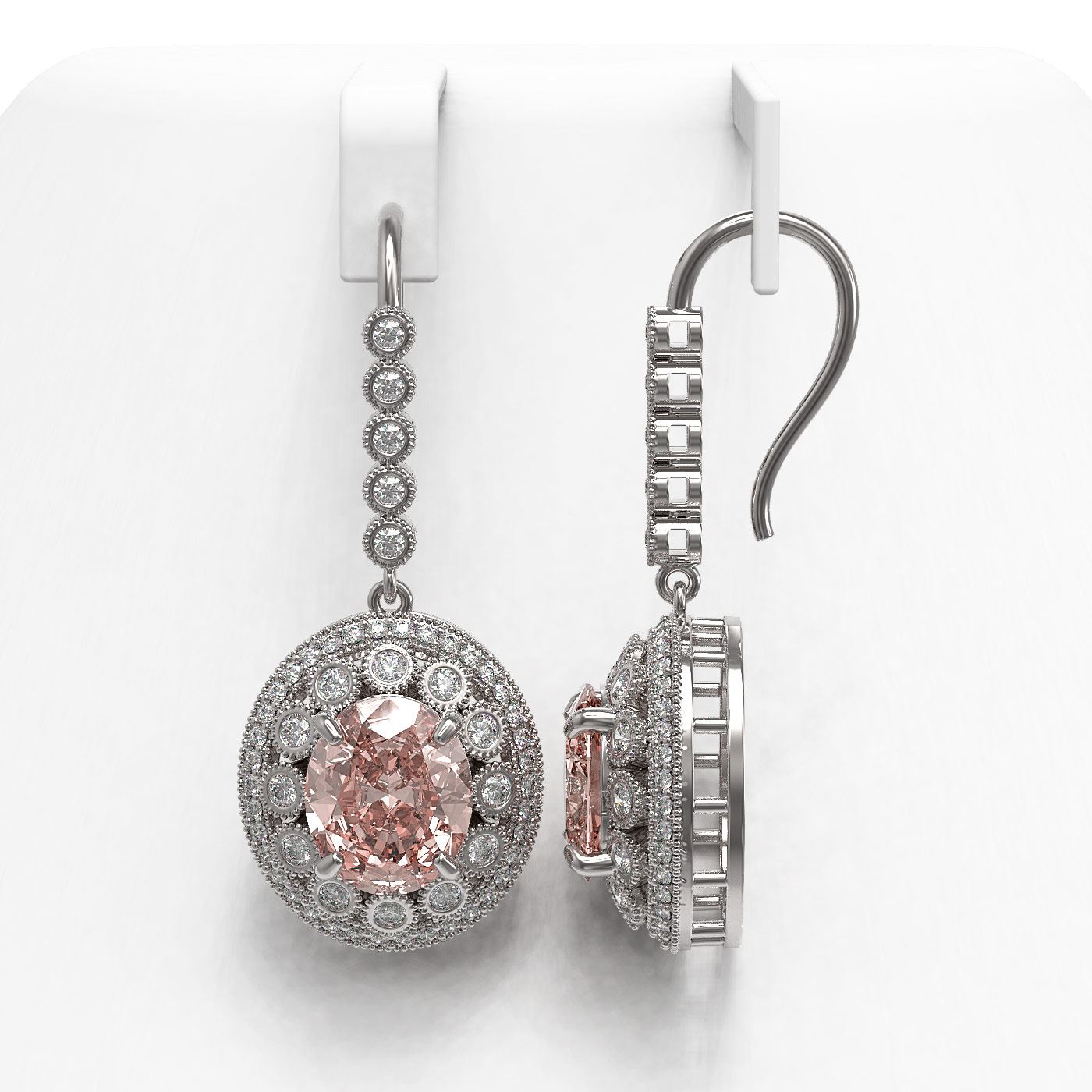 13.82 ctw Morganite & Diamond Victorian Earrings 14K White Gold