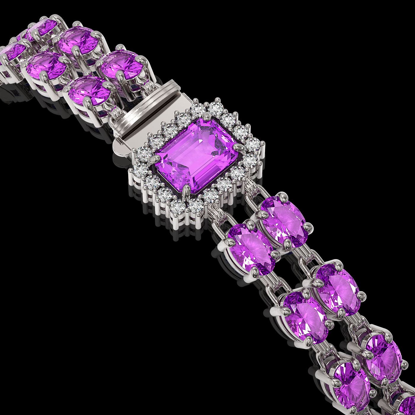 REF-236A4N - SKU: 45746 ---- 13.83 ctw Amethyst & Diamond Bracelet 14K White Gold