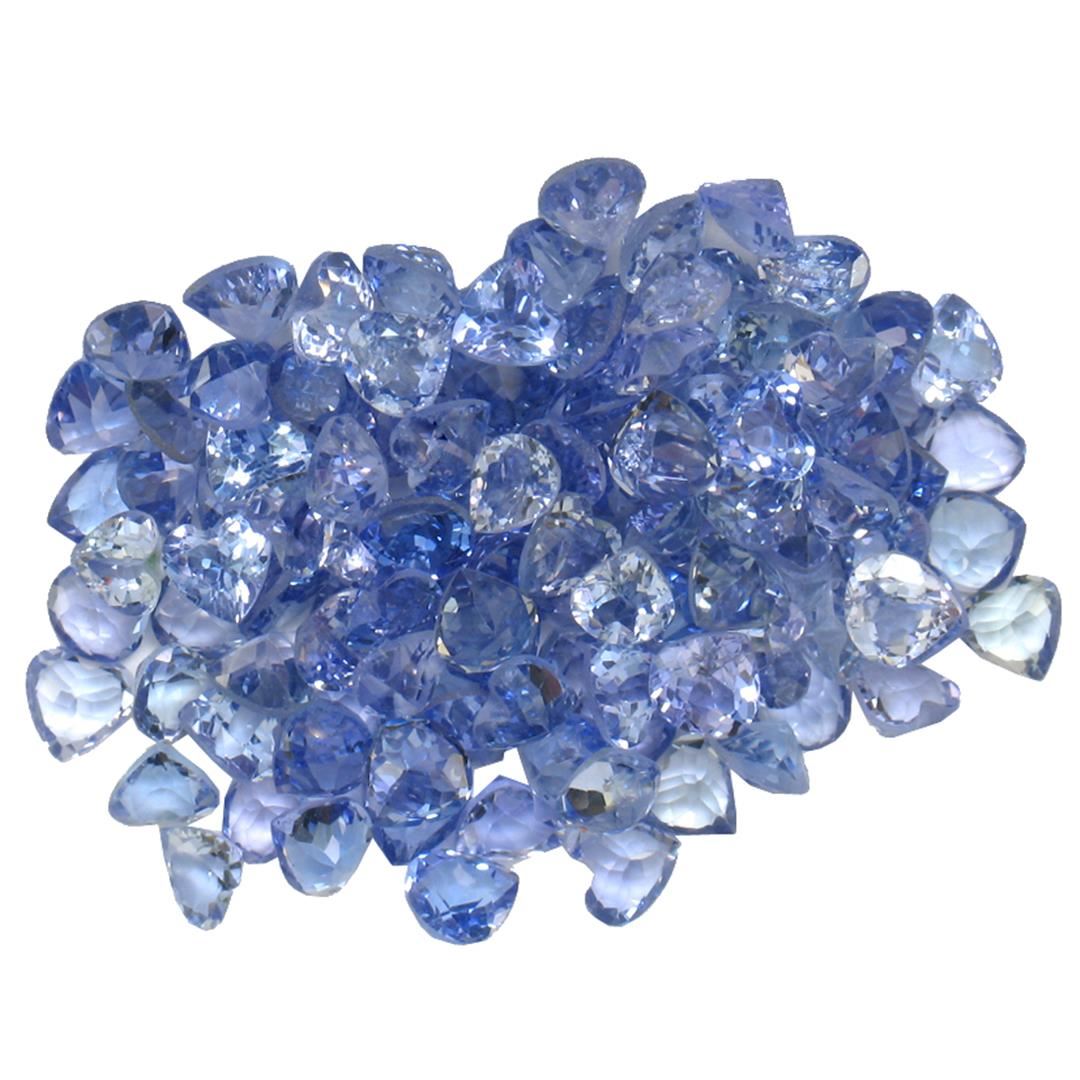 Fifty round mixed cut natural tanzanites, measuring 3.00 - 3.00 x 1.95 mm, exact total weight 13.84ct., clarity is slightly included, type I, medium, very slightly grayish, violetish blue color, (GIA vB 5/3), cut is good. Measurements & the color grade are an average for the group, Color grade is an average for the group, Transmitting light with no distortion, transparent, Naturally occurring internal & external characteristics are present, Indications of multiple laboratory enhancements, including high temperature heat treatment. UGS Appraised at $1,330.00.