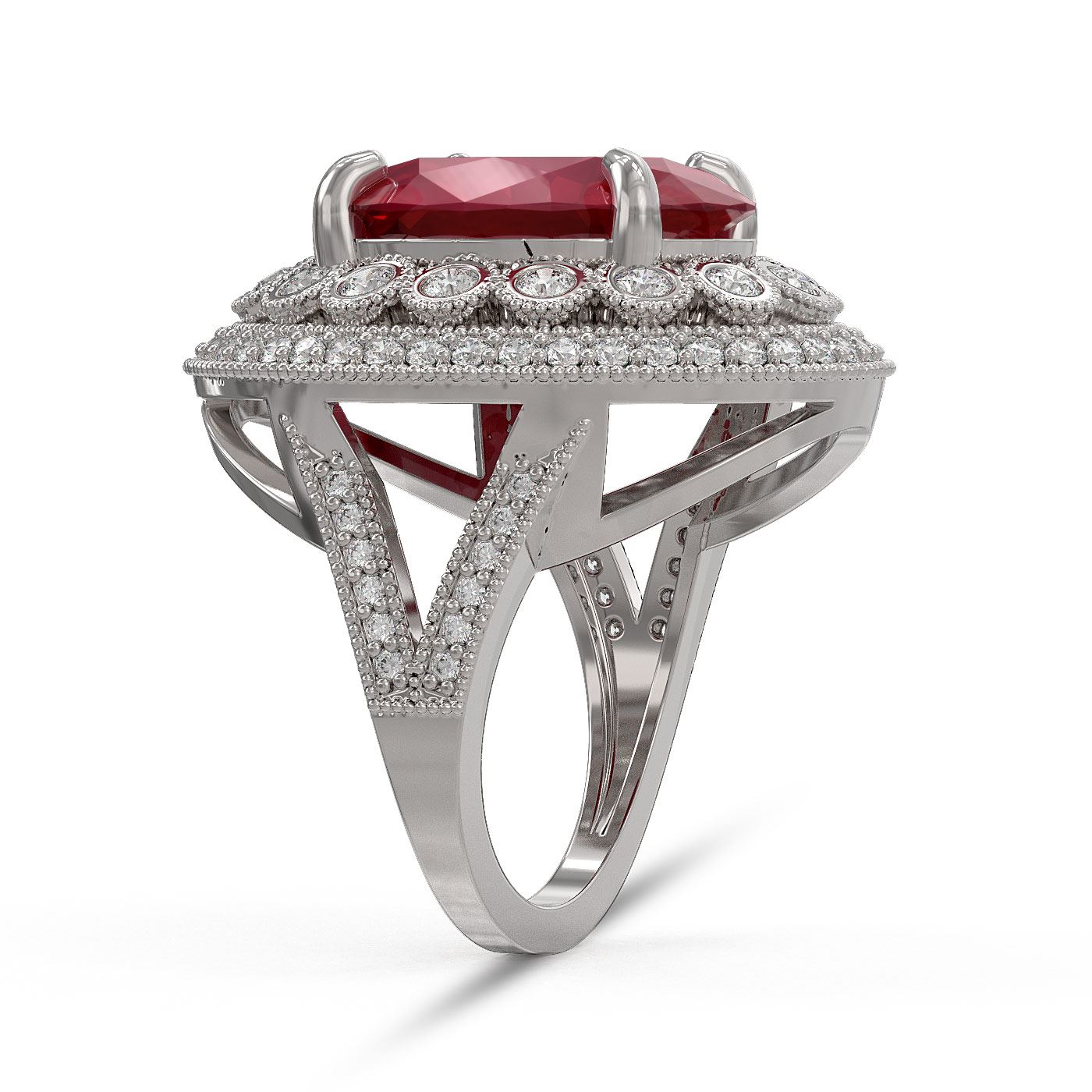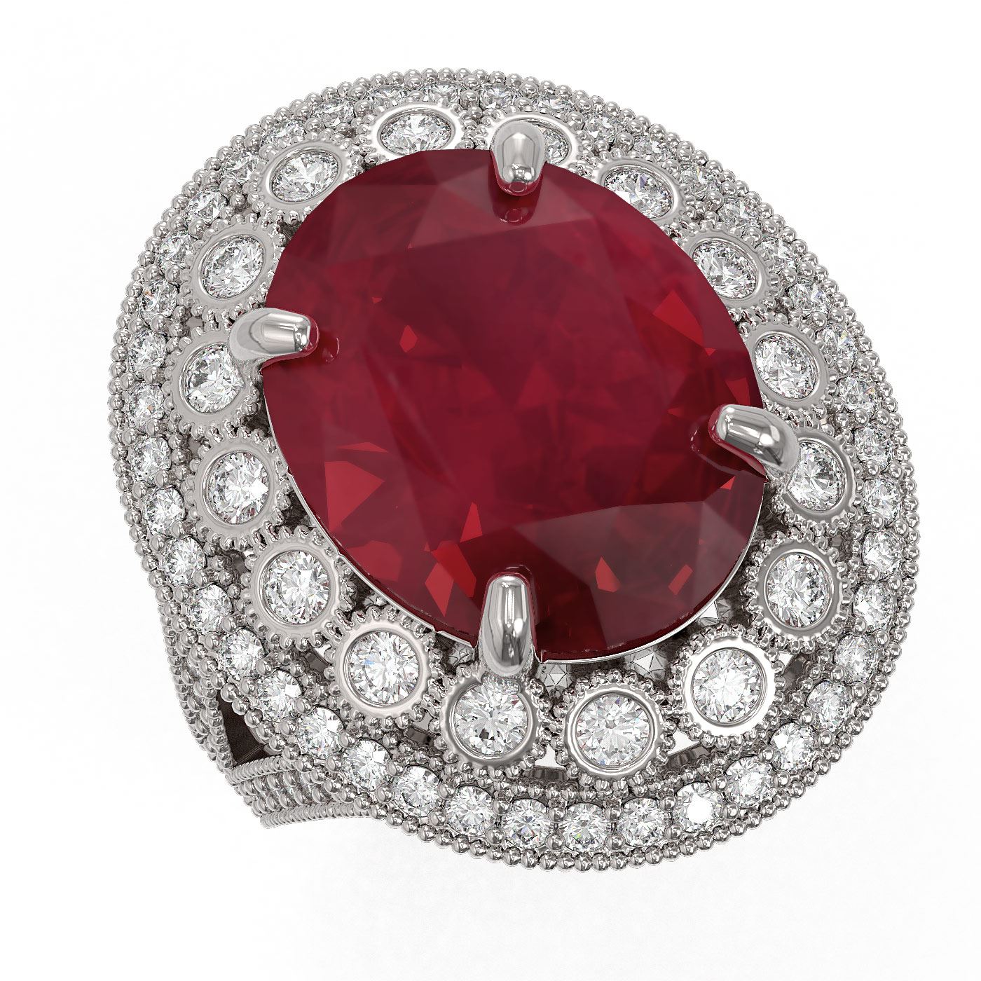 REF-286A2N - SKU: 43847 ---- 13.85 ctw Certified Ruby & Diamond Victorian Ring 14K White Gold