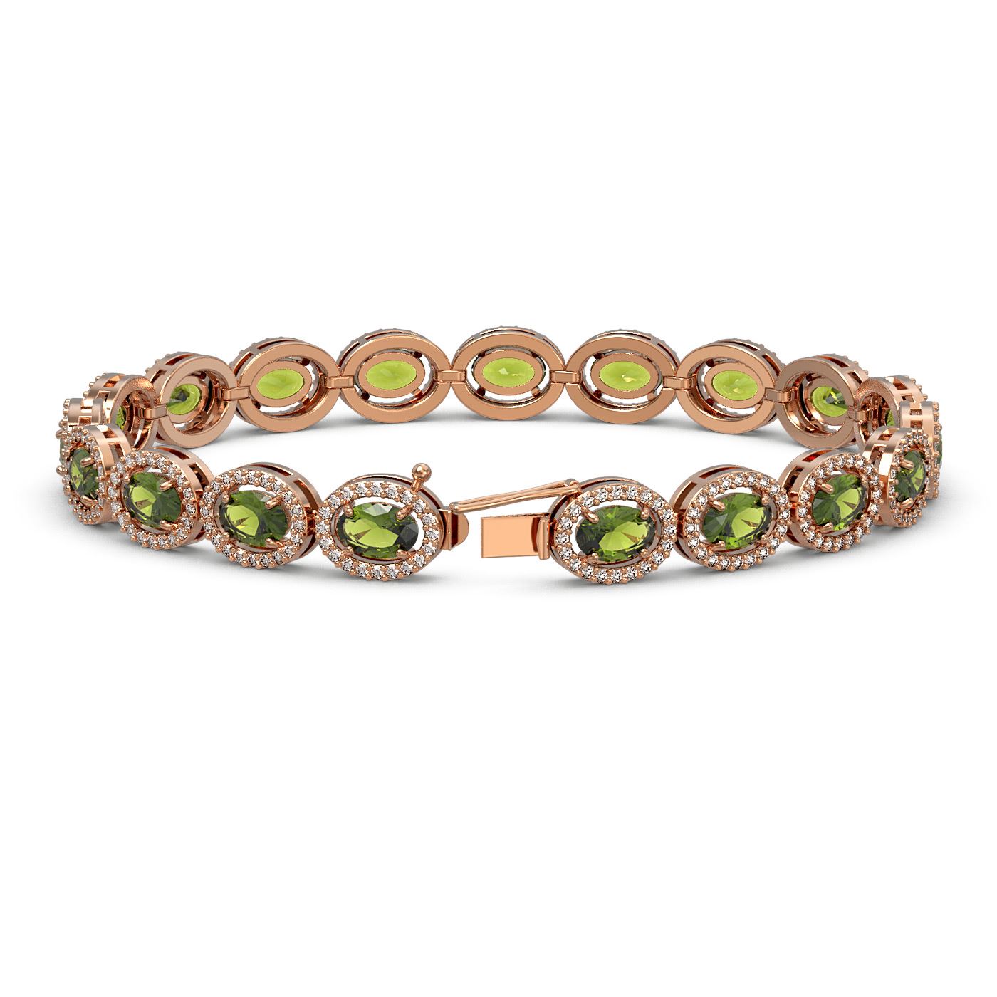 REF-271X6T -40473 ---- 13.87 CTW Tourmaline & Diamond Halo Bracelet 10K Rose Gold ---- Luxury Designer Brand Bracelet Appraised at $14,950 Certificate Number US40473 10k Rose gold, Bracelet Size is 7 Inches, Bracelet measuring approx. 8 mm x 7 Inches, weighing in total approx. 13 grams. Made in the USA and is stamped 10k, Main stone 11.02 carat total weight containing 19 pieces of Translucent Medium Green color with AAA quality Oval shape cut Tourmaline , Stone #2 2.85 carat total weight containing 380 pieces of G-H color with VS/SI quality Round shape cut Diamond