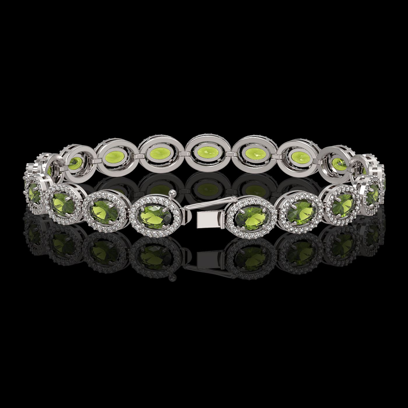 SKU: 40472 ---- 13.87 ctw Tourmaline & Diamond Micro Pave Halo Bracelet 10k White Gold