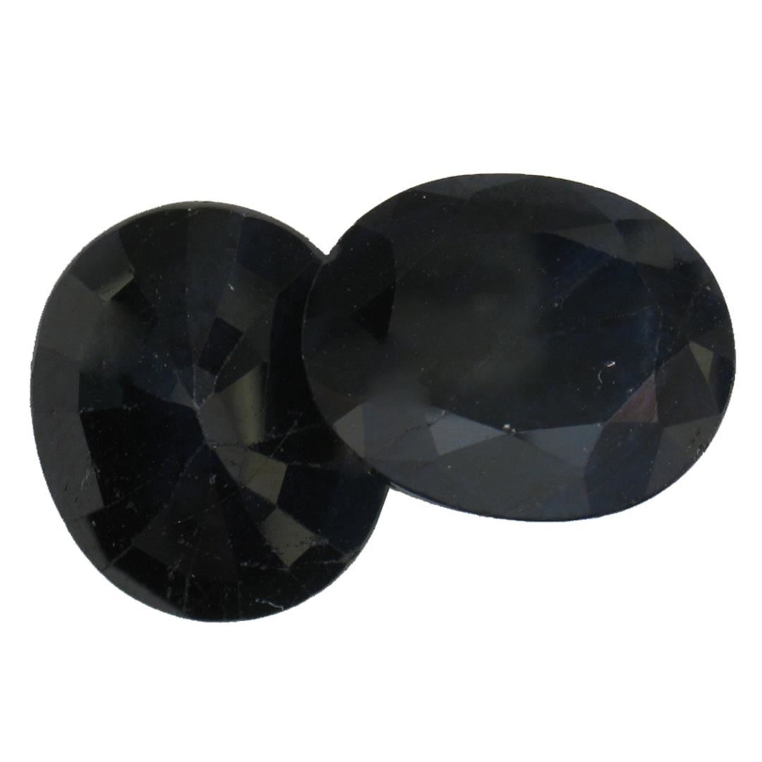 Two oval mixed cut natural blue sapphires, measuring 13.00 x 10.00 x 6.00mm, exact total weight 13.89ct., clarity is heavily included, type II, dark, very slightly grayish, blue color, (GIA B 7/3), cut is good. Transmitting light very diffusely, opaque. Naturally occurring internal & external characteristics are present. Indications of multiple laboratory enhancements, including high temperature heat treatment. Westfield Appraised at $1,230.00.