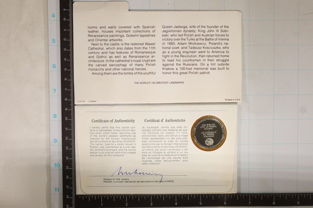 "WALLED CITY OF WAWEL, POLAND. WORLD'S 100 GREATEST LANDMARKS WITH INFO CARD"