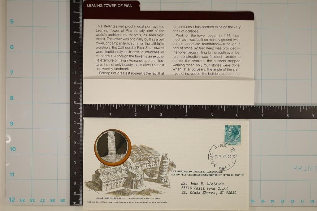 LEANING TOWER OF PISA, PISA ITALY. WORLD'S 100 GREATEST LANDMARKS WITH INFO CARD