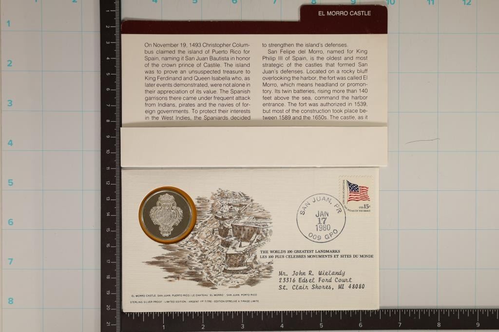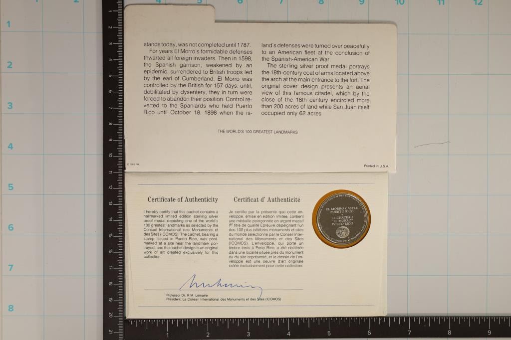 EL MORRO CASTLE, SAN JUAN, PUERTO RICO. WORLDS 100 GREATEST LANDMARKS BY THE FRANKLIN MINT WITH INFO CARD.