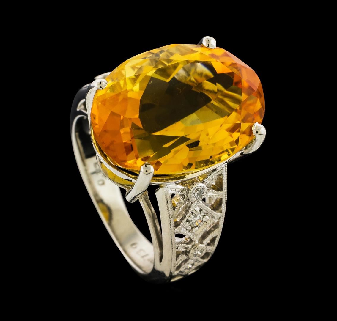One ring featuring: Platinum containing Citrine with a total weight of 13.90ct and Diamonds with a total weight of 0.13ct. Total Weight of Ring: 11.6 grams.