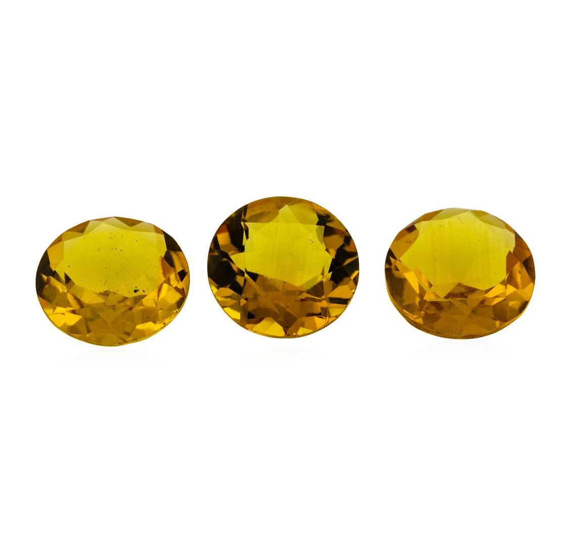 One natural round cut citrine quartz parcel of three with an exact weight of 13.93ctw., clarity is eye clean, yellowish orange, medium. Gemological Appraisals Services estimates the retail value at $557.2 GAS Appraised.