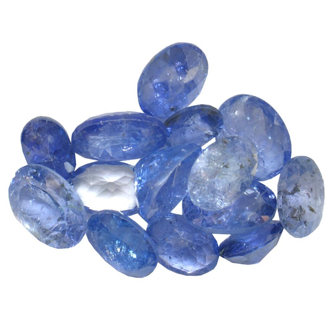 Fourteen oval mixed cut natural tanzanites exact total weight 13.94ct., clarity is moderately included, type I, medium dark, very slightly grayish, bluish violet color, (GIA bV 6/3), cut is good. Transmitting light with a minimum of distortion, transparent. Naturally occurring internal & external characteristics are present. Color grade is an average for the group. Tanzanite is a very rare gemstone that is only found in the country of Tanzania. Originally discovered in 1967. Tiffany & Company, named the stone Tanzanite. It is found in the Usumburu Mountains that border the Umba Valley of northern Tanzania. Tanzanite occurs in gray, brown, violet, blue, reddish-purple, & green. The gem is interesting because of its exceptional pleochroism. Rotated in different directions a tanzanite will exhibit multiple changes of color. Tanzanite has a low tolerance to ultrasonic cleaning, and should not be cleaned using this method. Westfield Appraised at $1,340.00.