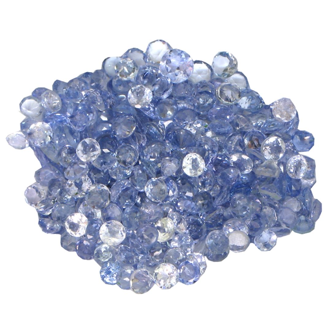 Fifty round mixed cut natural tanzanites, measuring 2.00 - 2.00 x 1.30 mm, exact total weight 13.94ct., clarity is slightly included, type I, medium, very slightly grayish, violetish blue color, (GIA vB 5/3), cut is good. Measurements & the color grade are an average for the group, Color grade is an average for the group, Transmitting light with no distortion, transparent, Naturally occurring internal & external characteristics are present, Indications of multiple laboratory enhancements, including high temperature heat treatment. Westfield Appraised at $1,340.00.