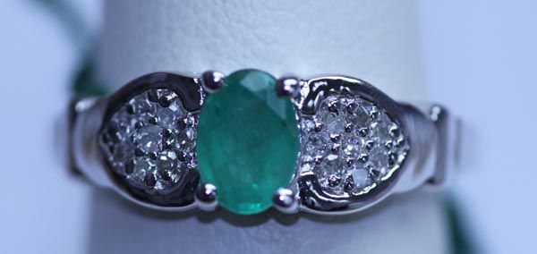 13.95 CTW EMERALD AND DIAMOND RING .925 STERLING SILVER **|**|** 13.95 CTW EMERALD AND DIAMOND RING .925 STERLING SILVER; DIAMOND0.14 CTW; CENTERSTONE 0.68 CTW ; MSRP: $750