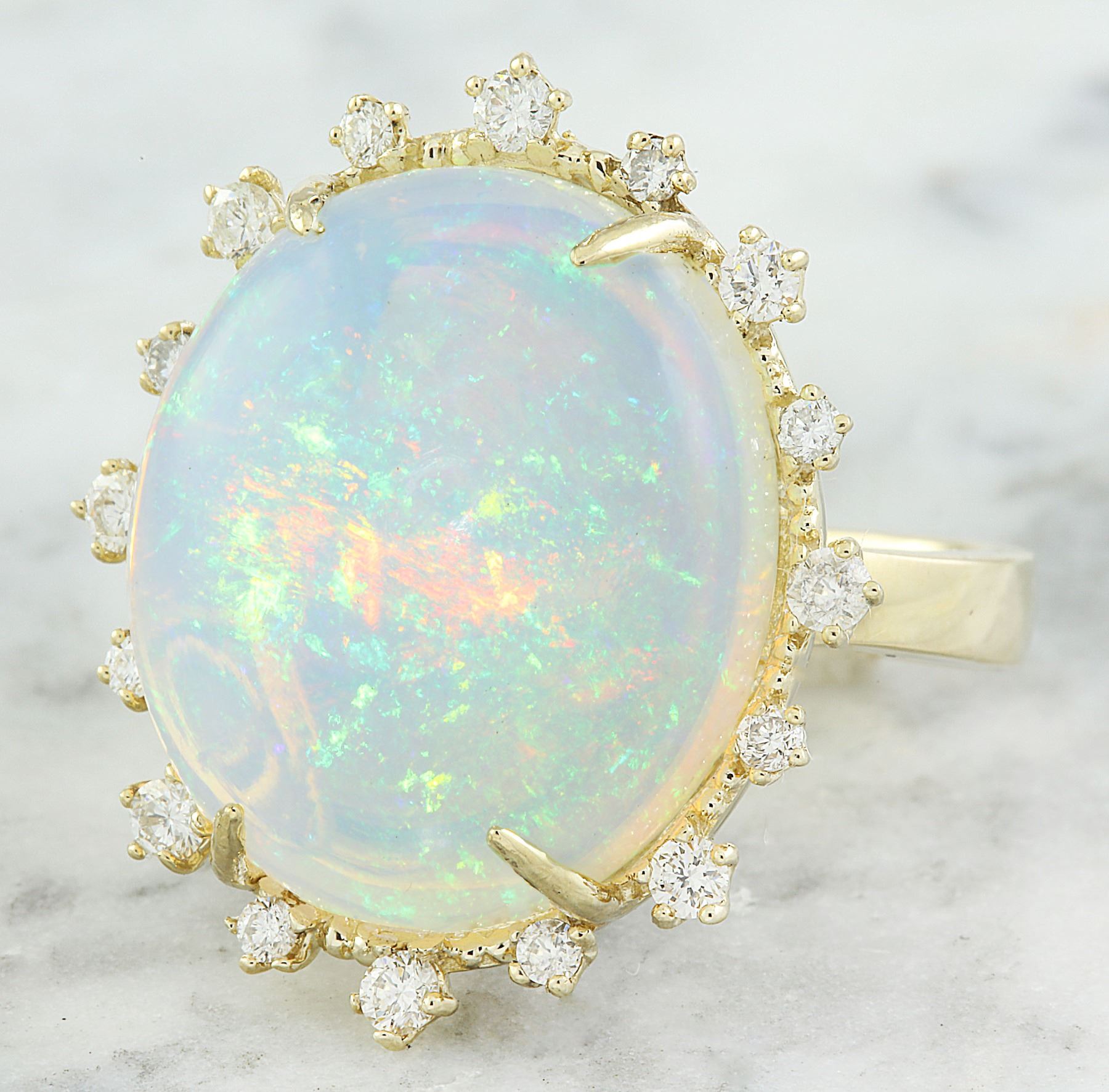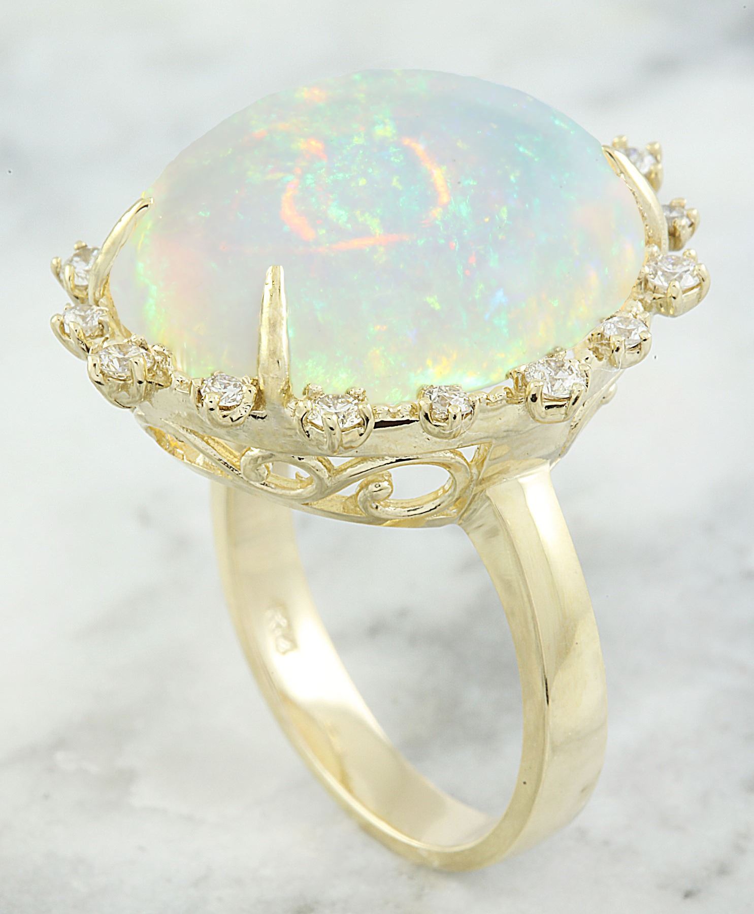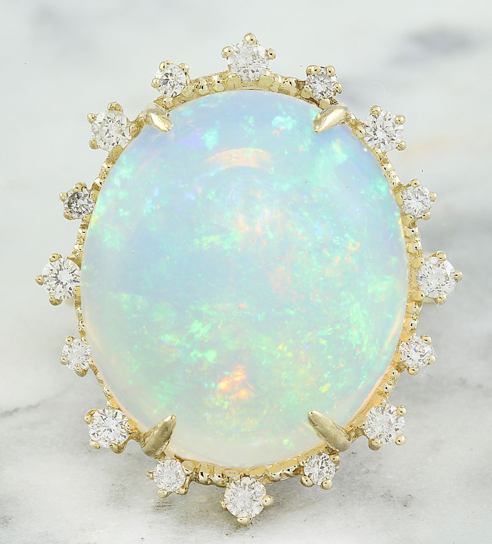 13.95 CTW Opal 14K Yellow Gold Diamond Ring