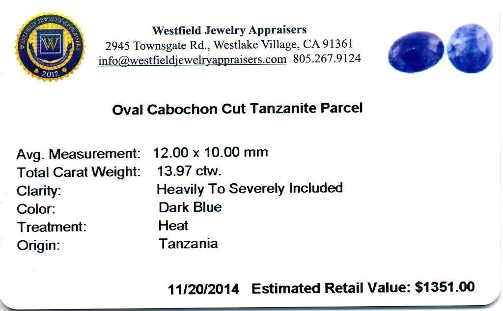 13.97ctw. Oval Cabochon Cut Tanzanite Parcel. Westfield Appraised at $1,351.00.
