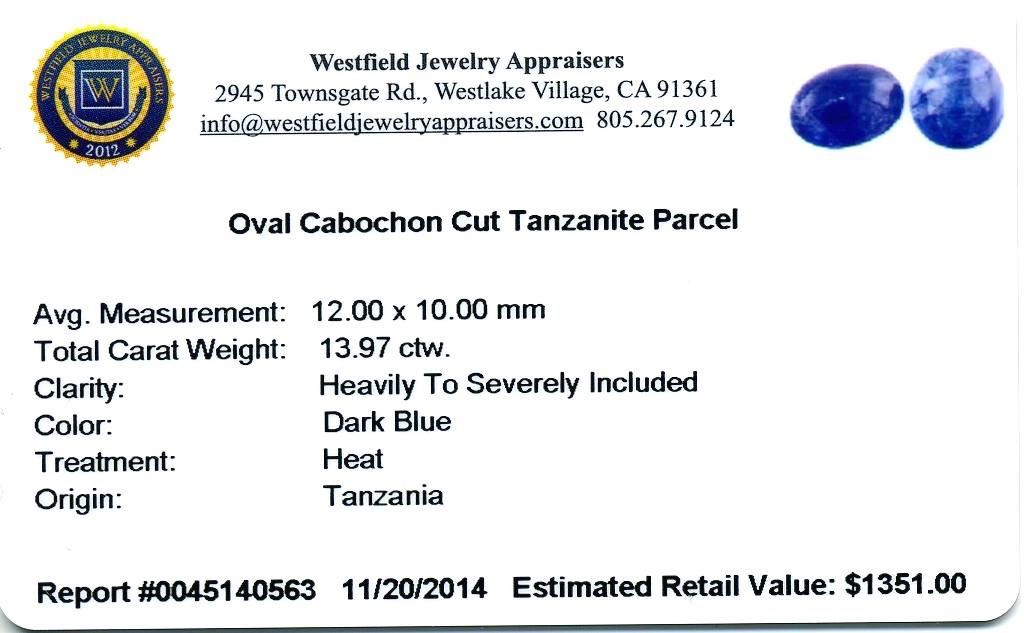 13.97ctw. Oval Cabochon Cut Tanzanite Parcel. Westfield Appraised at $1,351.00.