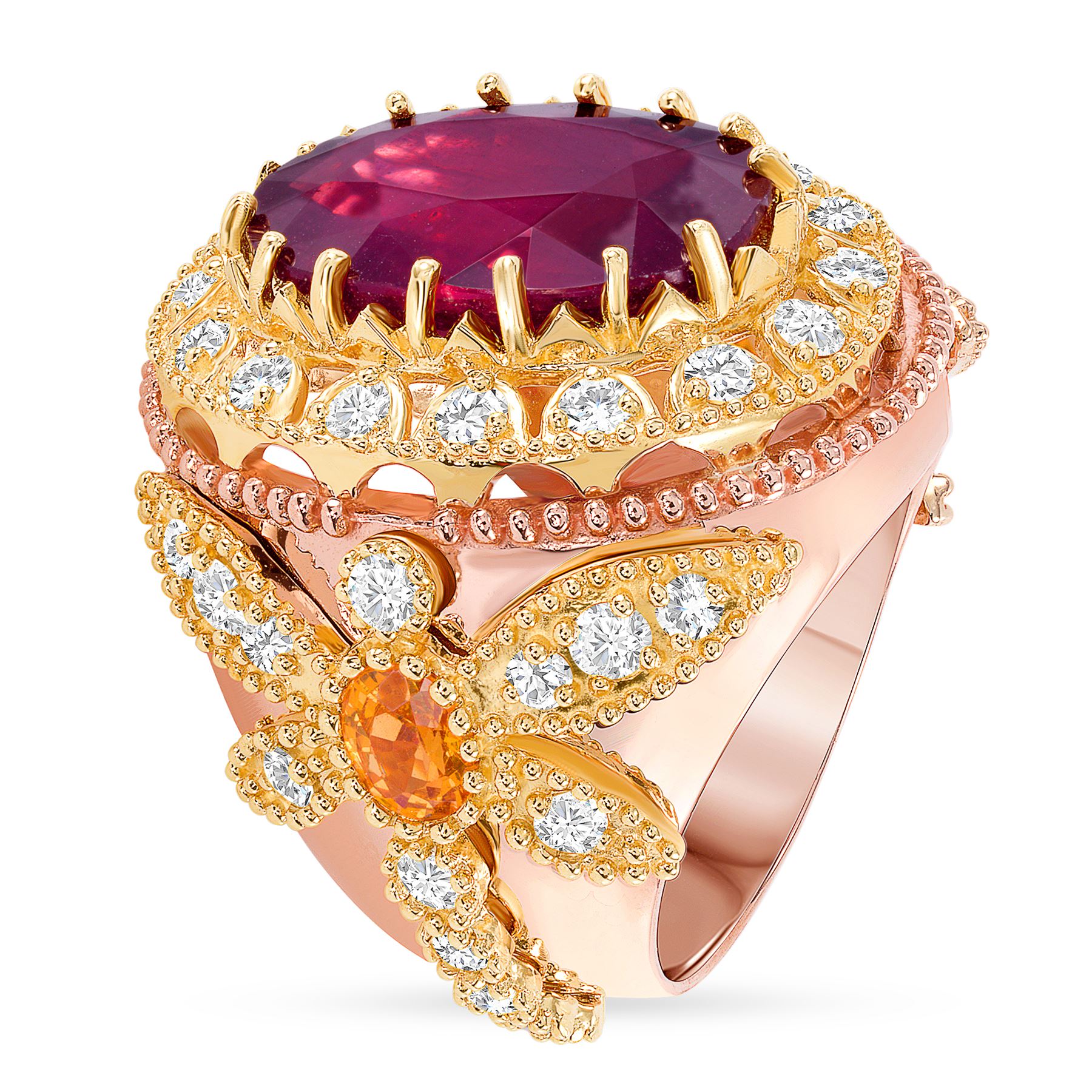 14k Rose Gold : 19.2gm / Ruby : 13.9ct / Diamond : 1.99ct / #LRby71