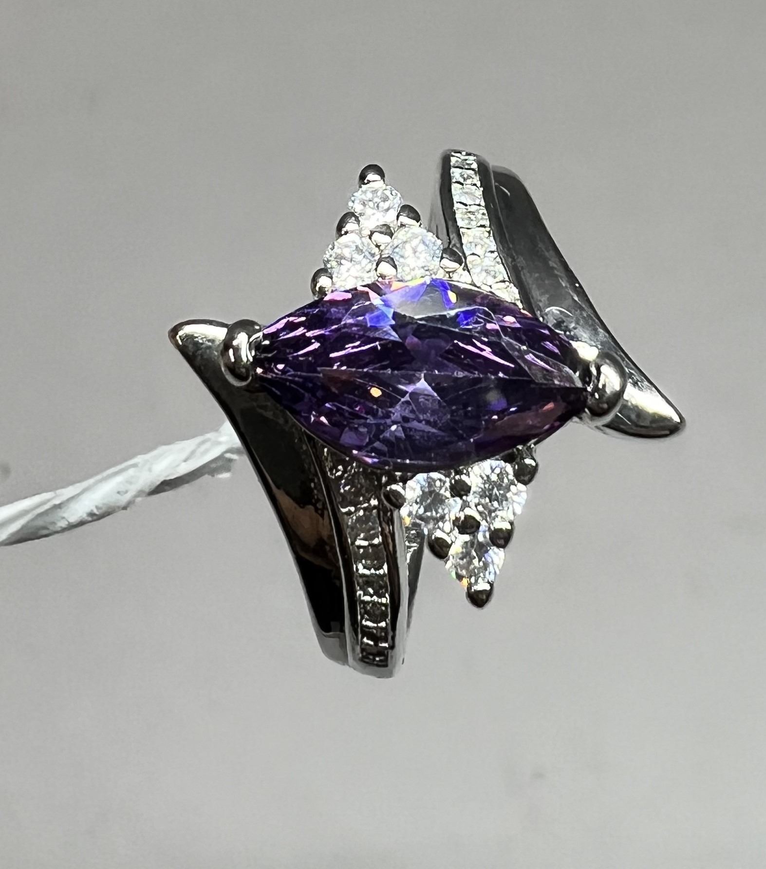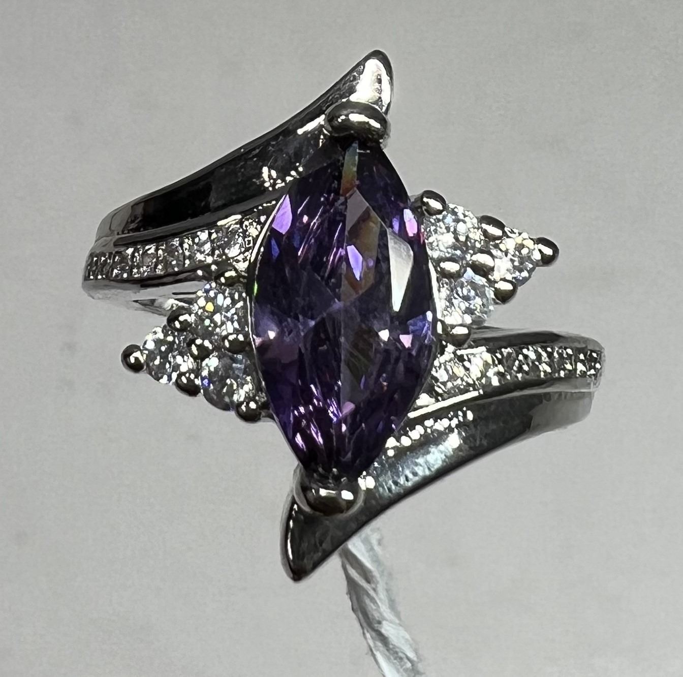 13. Amethyst, Lab Created, Claw Set, S925 Overlay. Size 7