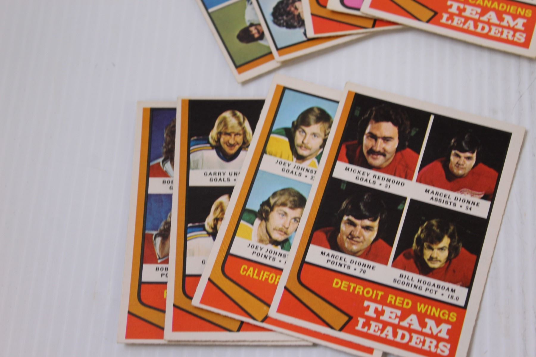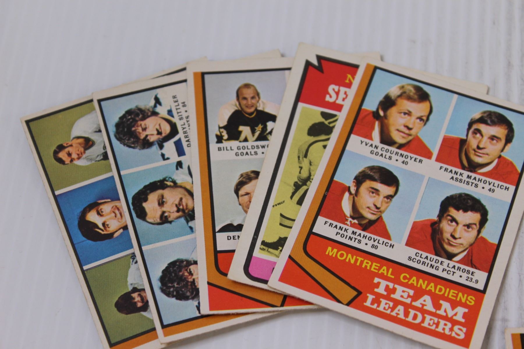 (13) Assorted 1974-75 OPC Team Scoring Leader Hockey Cards