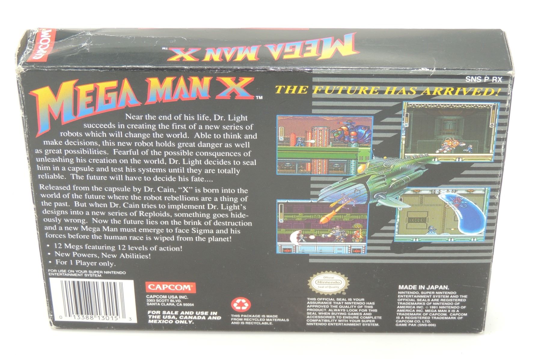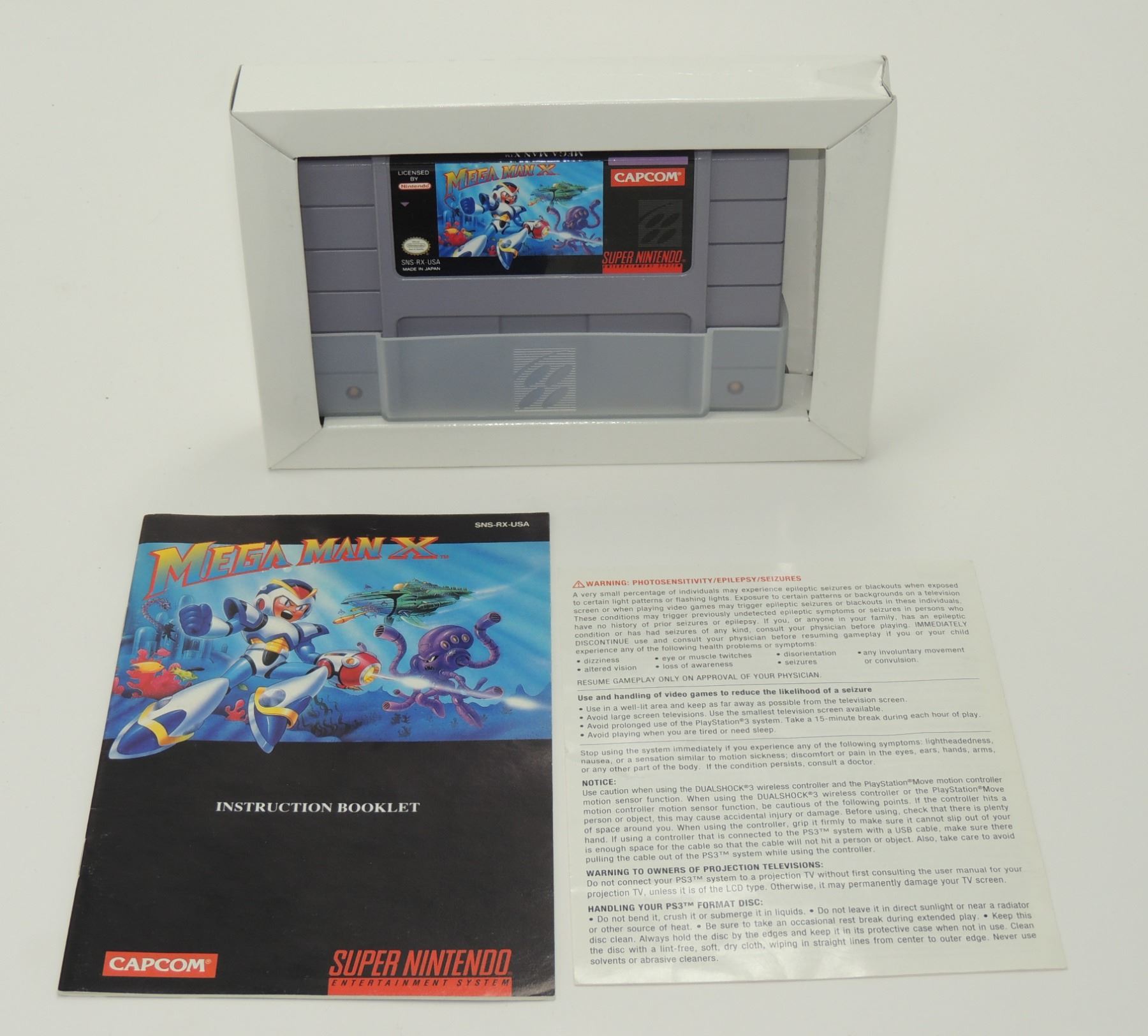 COMPLETE TESTED & WORKING! INCLUDES BOX AND INSTRUCTION MANUAL CAPCOM MEGA MAN X SUPER NINTENDO GAME, INCLUDES PROTECTIVE PLASTIC CASE 1991