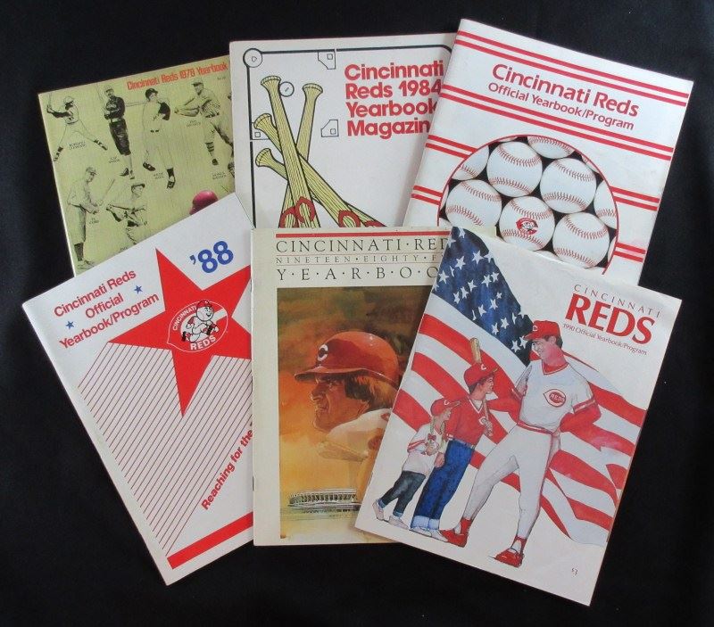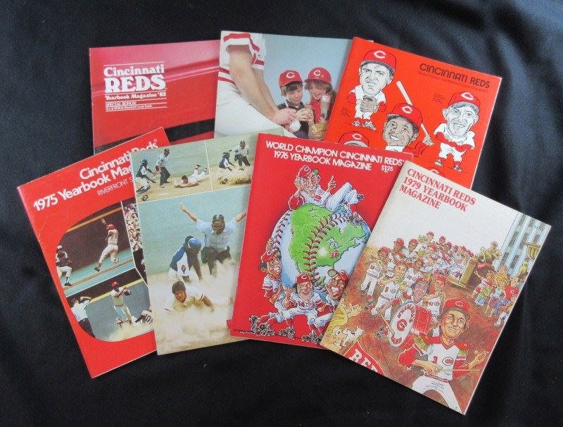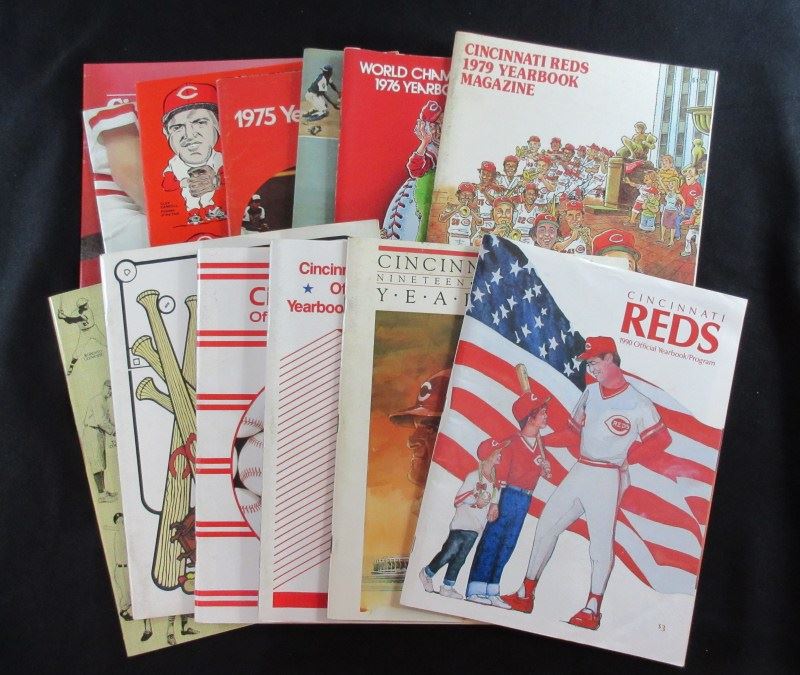 RECEIVE 1973, '74, '75, '76, '78, '79, '82, '83, '84, '85, '88, '89, '90 REDS YEARBOOKS, VERY NICE, EST $150-$170