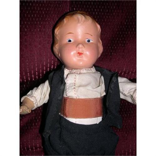 13" Composition Boy. Doll has slight knick on finger. Has very slight crazing, wooden shoes. Doll comes from a smoke free environment. Buyer to pay 15.00 shipping, handling, and insurance. Thanks for viewing.