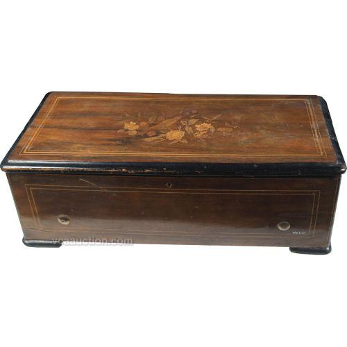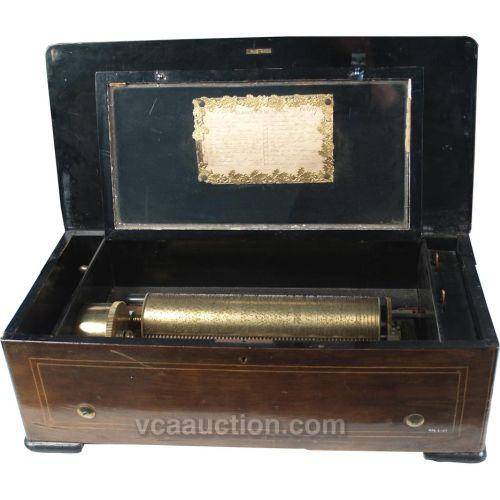 24 Air (2 Per Turn) 13" Fat Cylinder Music Box, Inlaid Lid, Original Tune Card, Maker Unknown, SN 7947.