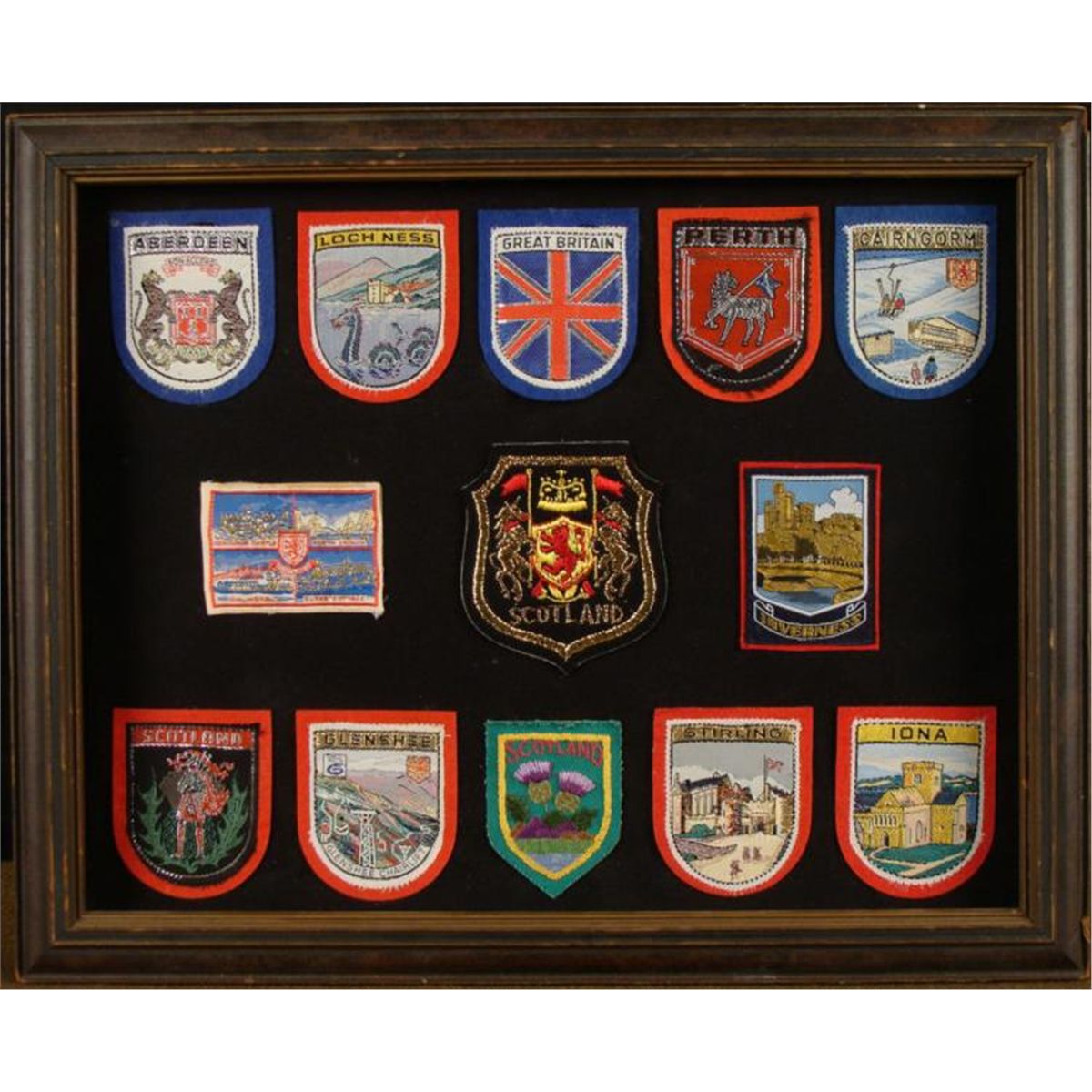13 FRAMED BRITISH COMMONWEALTH PATCHES--MANY GOLD & SILVER BULLION-FRAMED * NICE DISPLAY FRAME FOR YOUR COLLECTION *