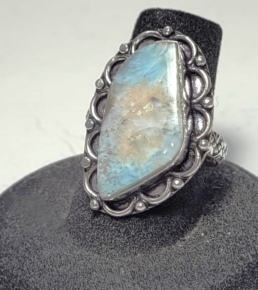SIZE 7.5 RING, HEAVILY CARVED SHANK, STAMPED 925. JEWELLERY