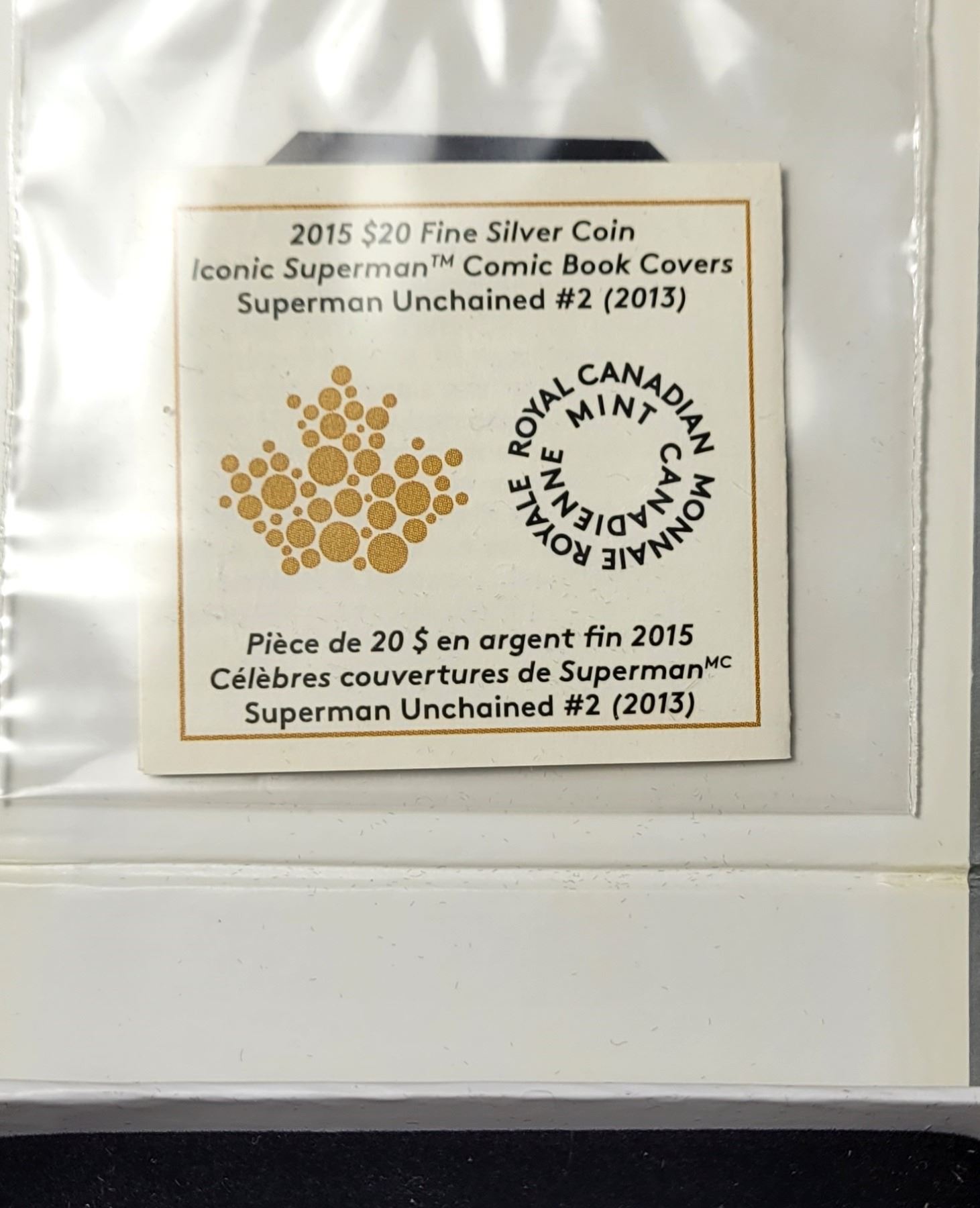 $20.00 FINE SILVER COIN, 99.99% SILVER, IMAGE FROM SUPERMAN COMIC BOOK #2, COA.COLLECTIBLE
