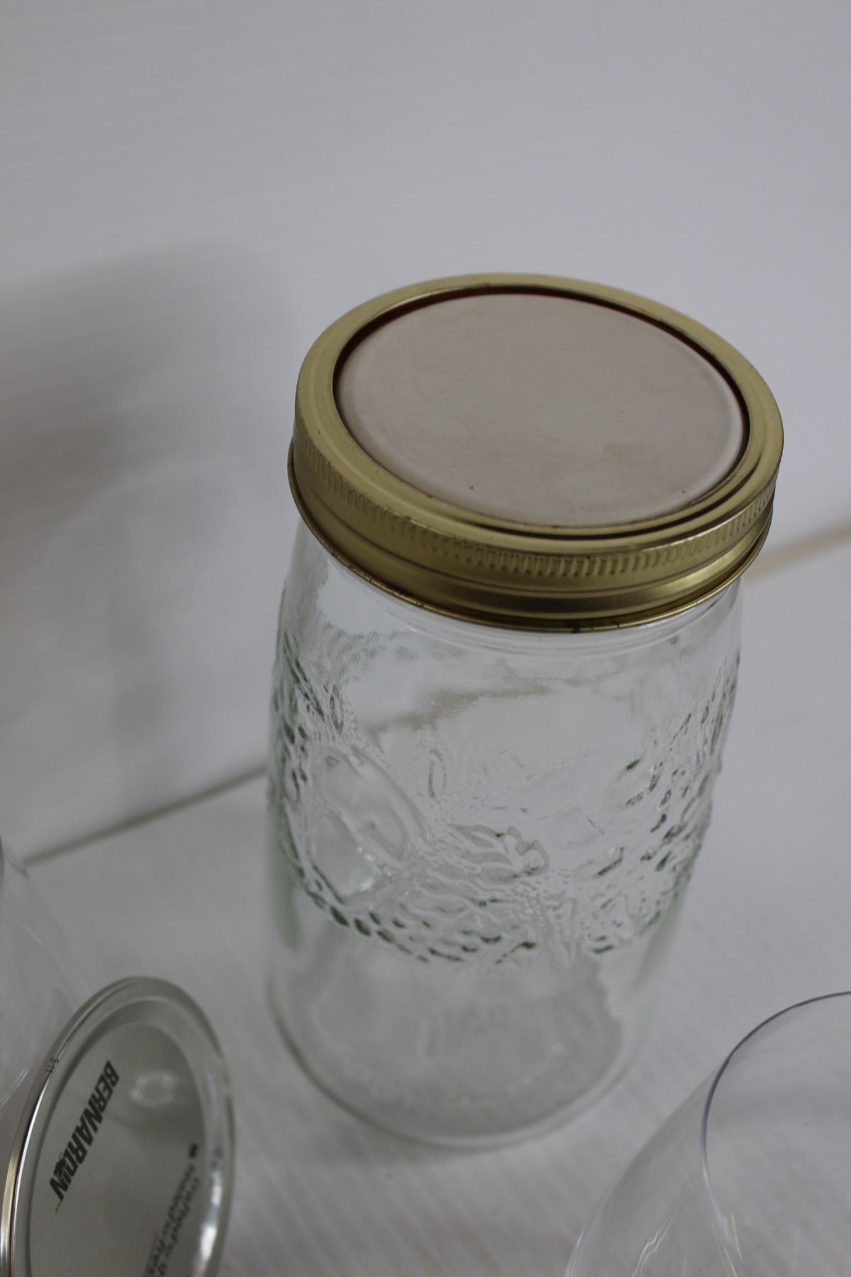 (13) Glasses, (3) Large Jars, (8) Small Jars, Misc.