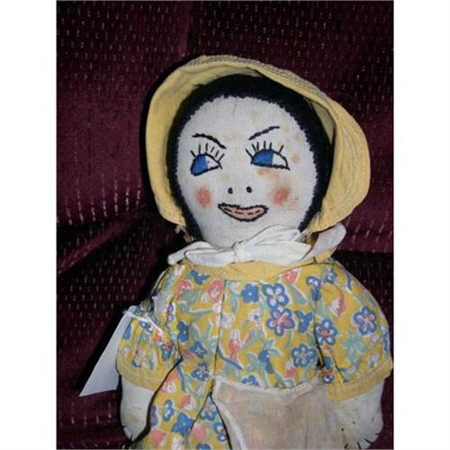 13" Homemade Doll W/ Stitched Features Yellow Dress. Doll has yarn hair. Doll comes from a smoke free environment. Buyer to pay 10.00 shipping, handling, and insurance. Thanks for viewing.