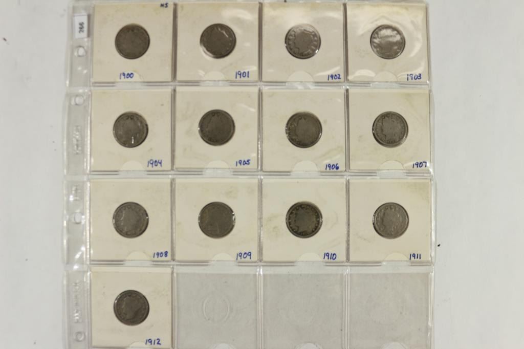 13-LIBERTY "V" NICKELS 1900-1912 ALL DIFFERENT