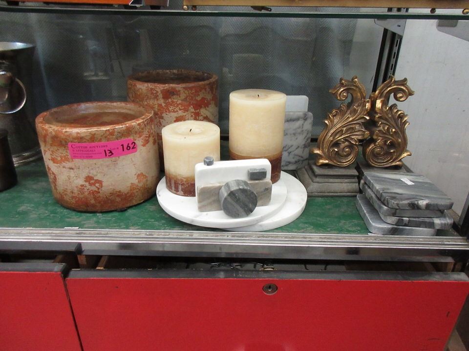 Marble coasters & camera, pillars, book ends, 7" diameter ceramic stands