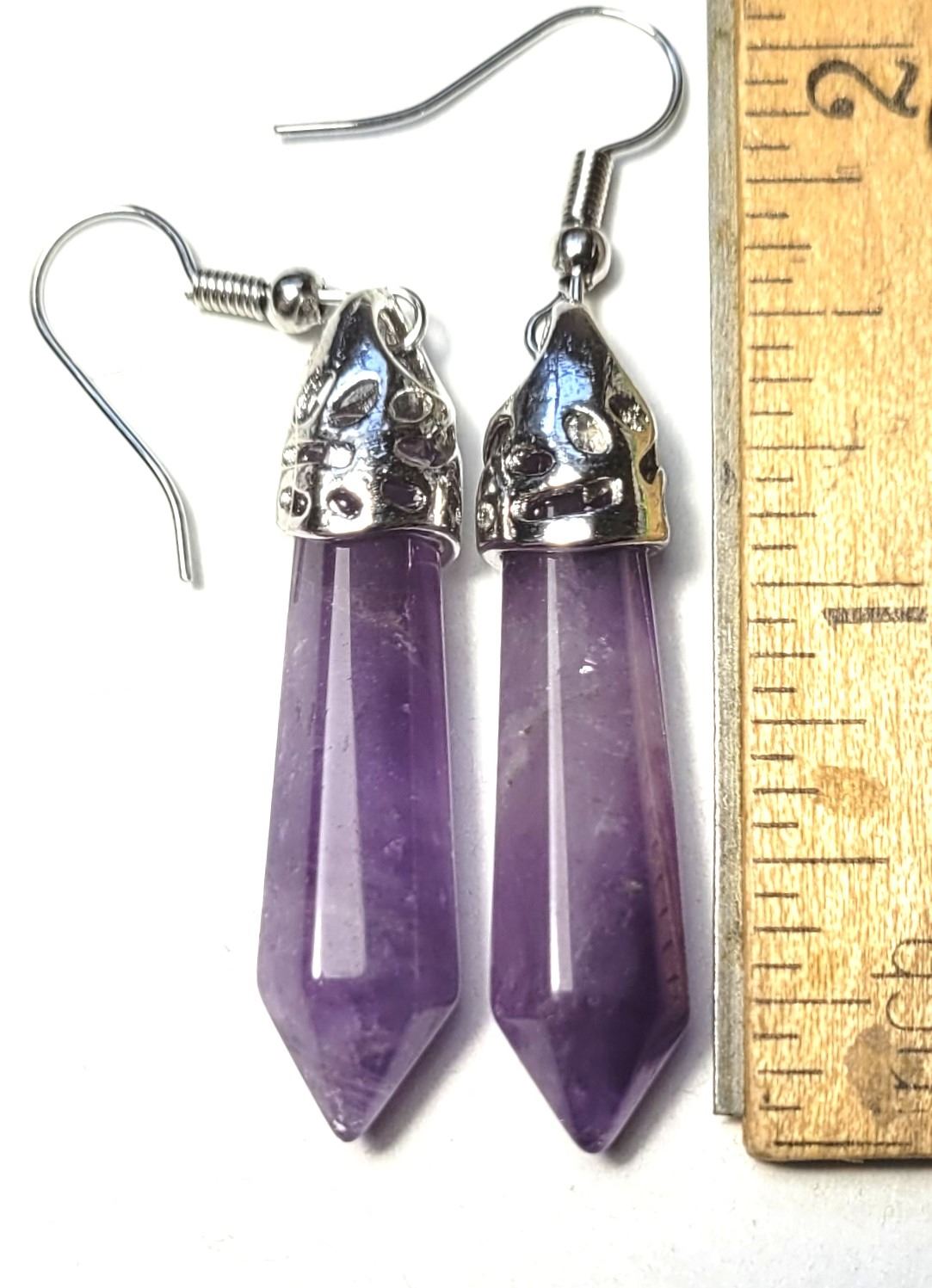 EARRINGS WITH SILVER TONE CAPS. JEWELERY