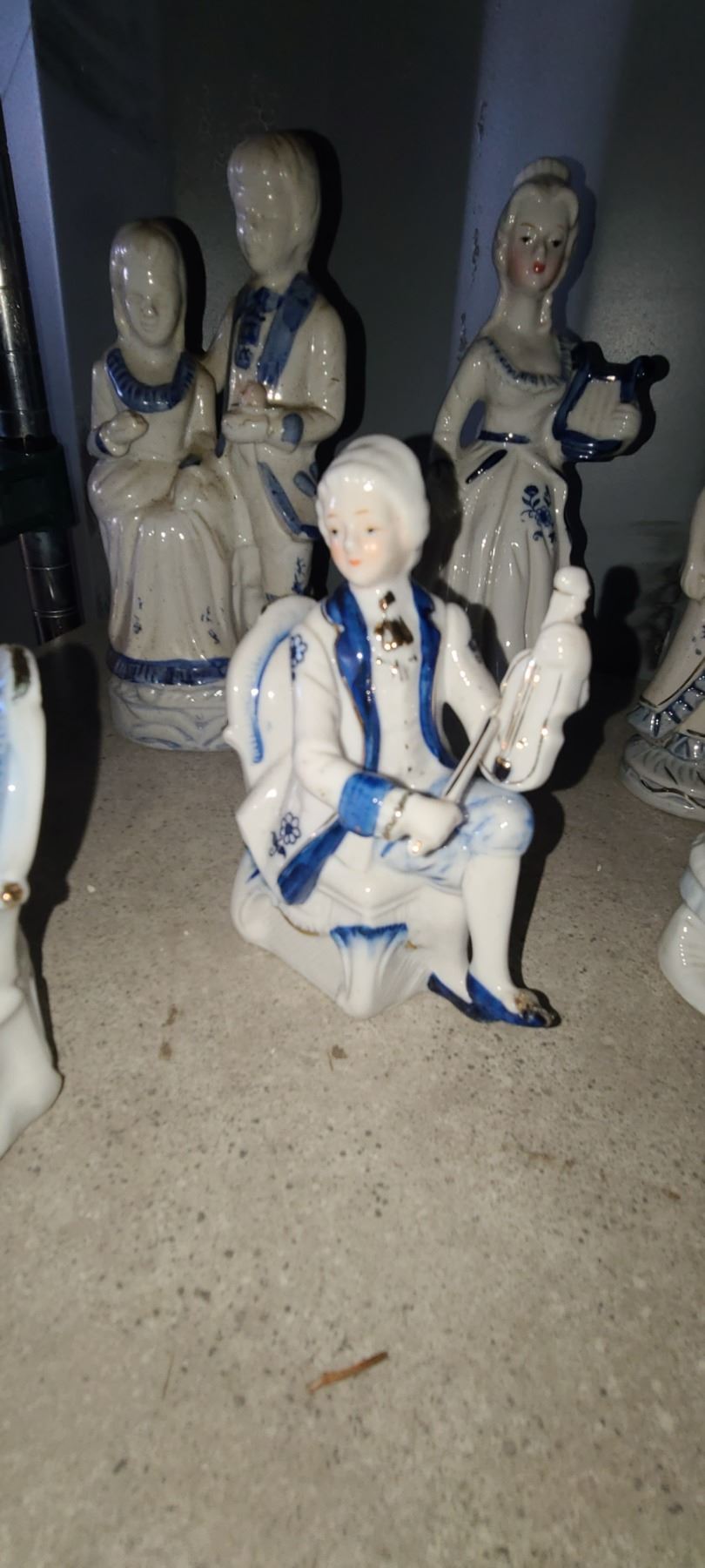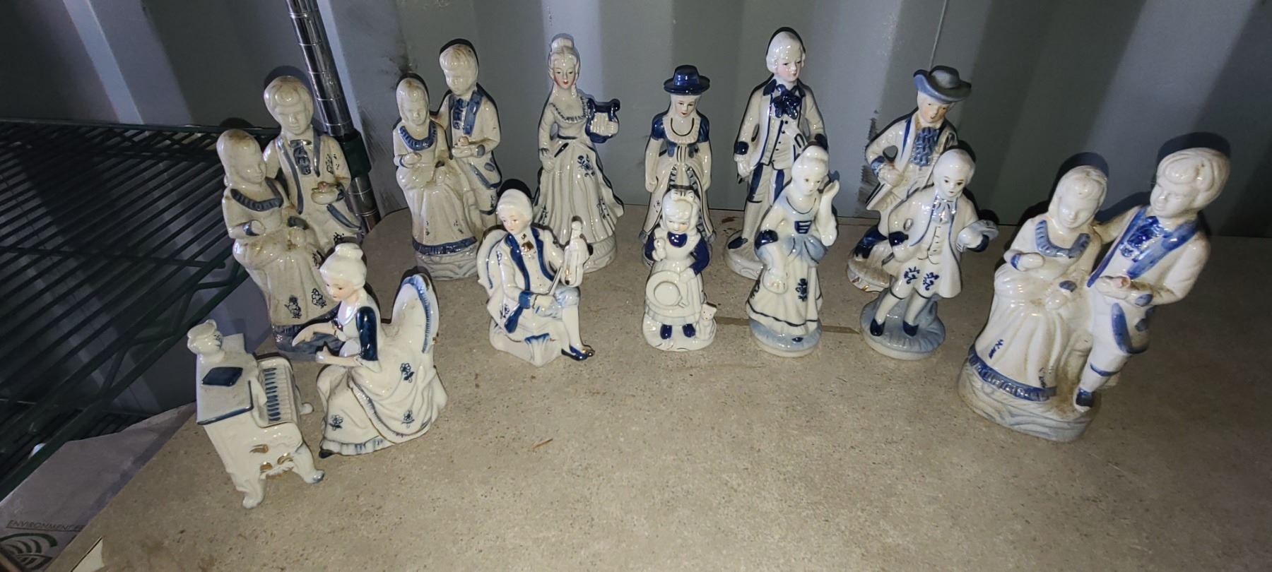 13 PIECE COLLECTION OF MUSICIANS ON VARIOUS INSTRUMENTS WITH OTHER SAME THEMED FIGURINES.