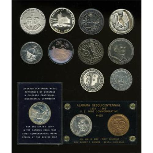 <B>13-Piece Silver Medal Grouping.</B></I> Twelve silver and one bronze commemorative medals that commemorate various themes, places, or people. A great lot with some interesting subjects.<BR><BR><b>Shipping:</b> Coins & Currency (<a target="_blank" href="http://www.heritageauctions.com/common/shipping.php">view shipping information</a>)