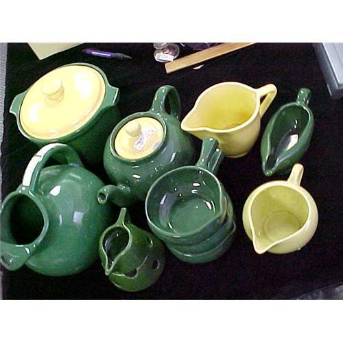 <tr><td>Title:13 Pieces Green and Yellow Bakeware-Unmarked</td></tr>