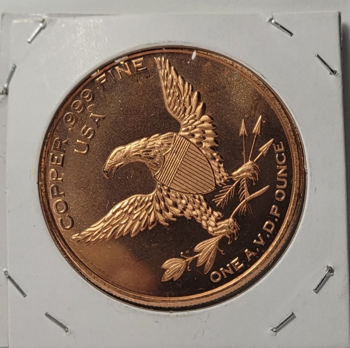 13) ROUND OF 1 OUNCE OF PURE COPPER, USA EAGLE