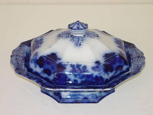 13" SCINDE FLOW BLUE COVERED VEGETABLE BY ALCOCK - GOOD CONDITION;