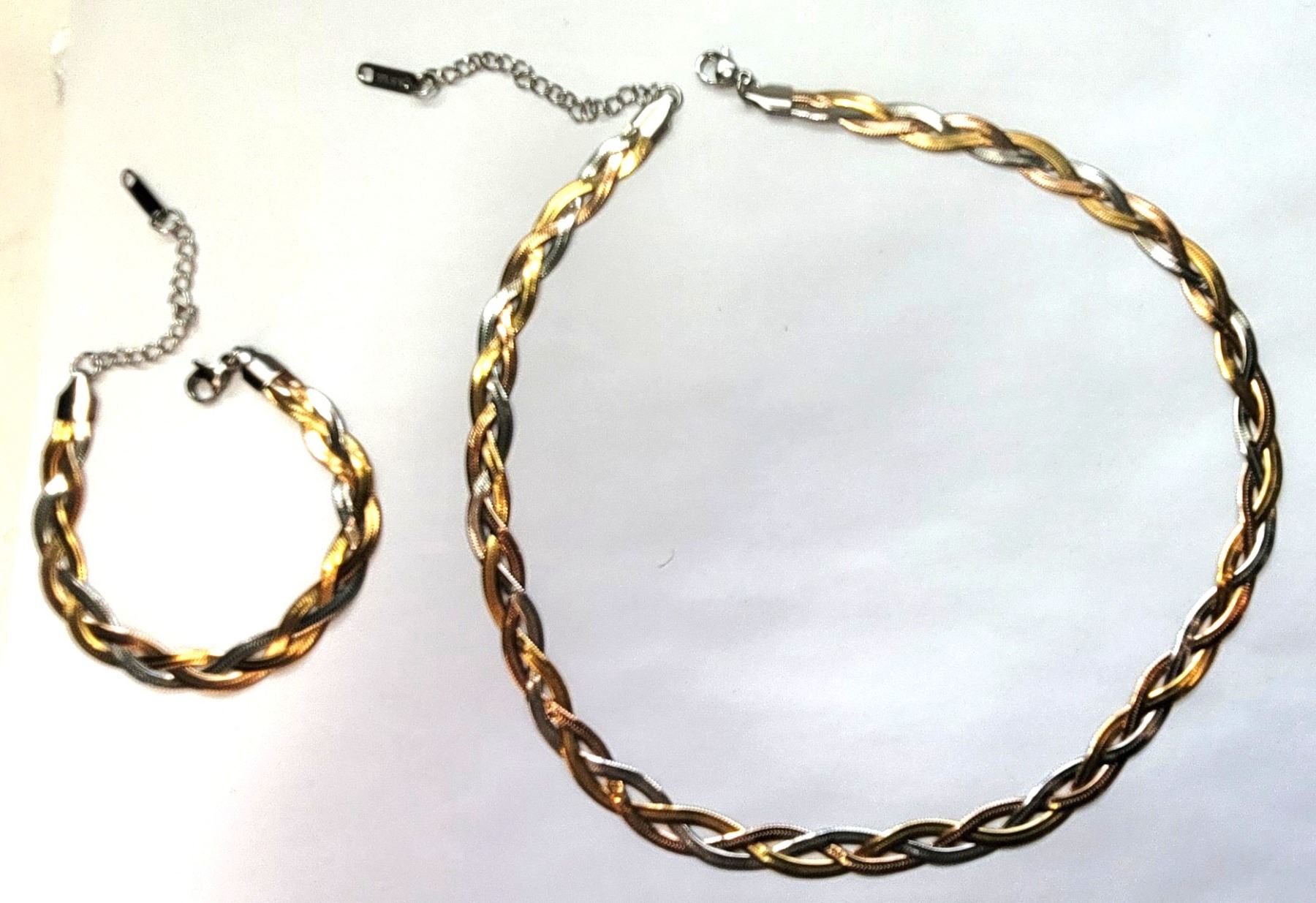 13) SET OF BRAIDED GOLD TONE, SILVER TONE
